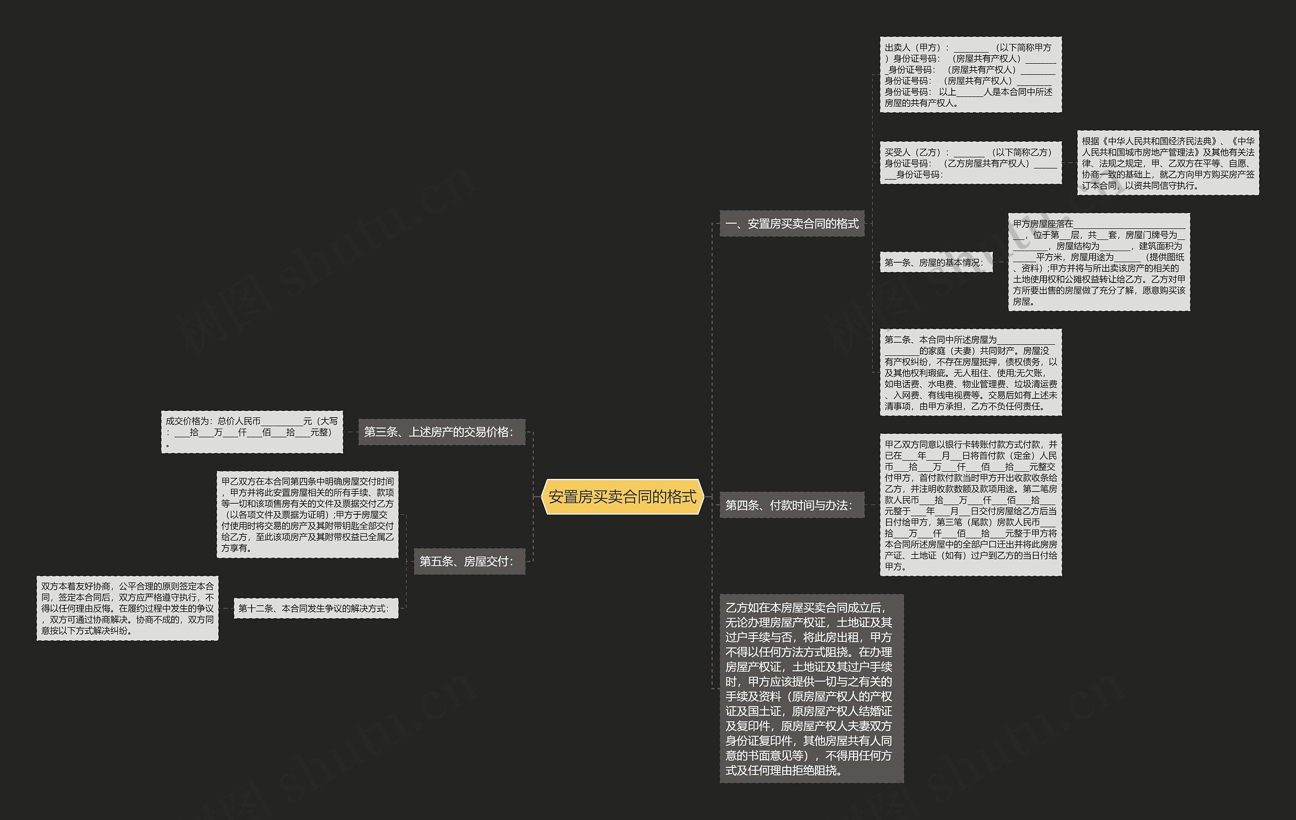 树图思维导图提供《安置房买卖合同的格式》在线思维导图免费制作,点击“编辑”按钮,可对《安置房买卖合同的格式》进行在线思维导图编辑,本思维导图属于思维导图模板主题,文件编号是:ae2e38df1523038a3e9a782fb12ad40a