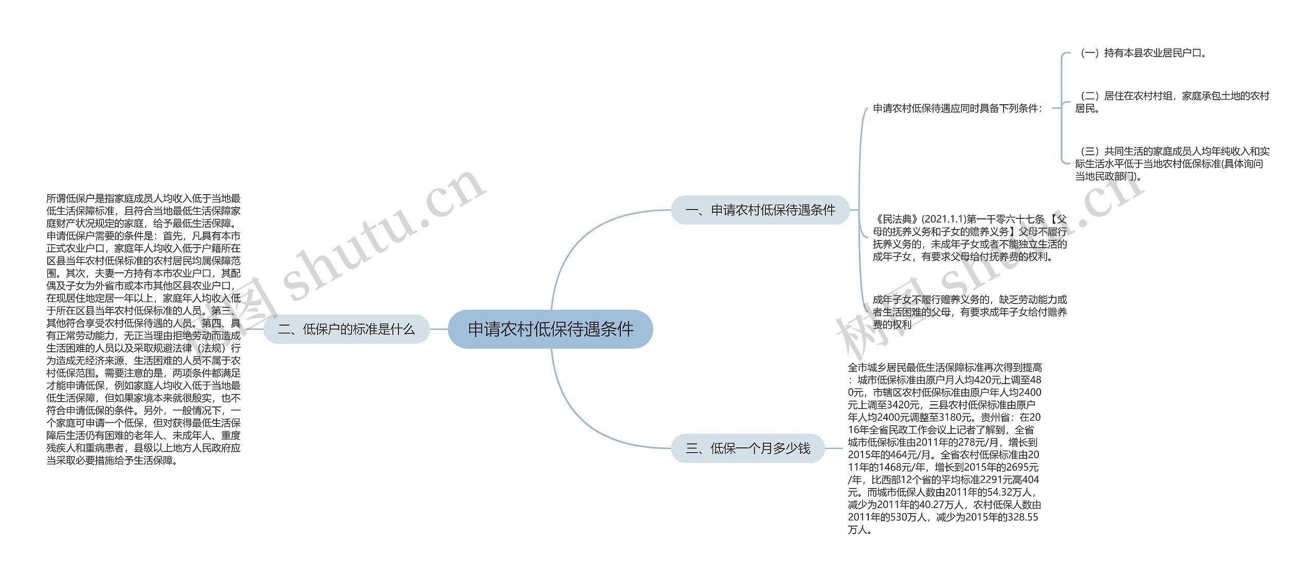 树图思维导图提供《申请农村低保待遇条件》在线思维导图免费制作,点击“编辑”按钮,可对《申请农村低保待遇条件》进行在线思维导图编辑,本思维导图属于思维导图模板主题,文件编号是:4858d5df39a5cedffae9605bb141f890