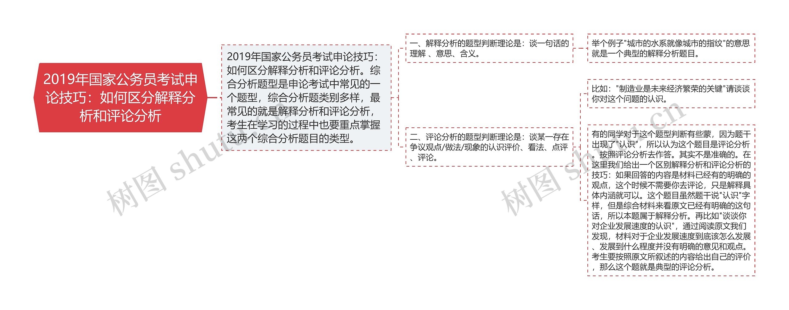 树图思维导图提供《2019年国家公务员考试申论技巧:如何区分解释分析和评论分析》在线思维导图免费制作,点击“编辑”按钮,可对《2019年国家公务员考试申论技巧:如何区分解释分析和评论分析》进行在线思维导图编辑,本思维导图属于思维导图模板主题,文件编号是:7416c3febf056d64431b9ec6c0b4160c