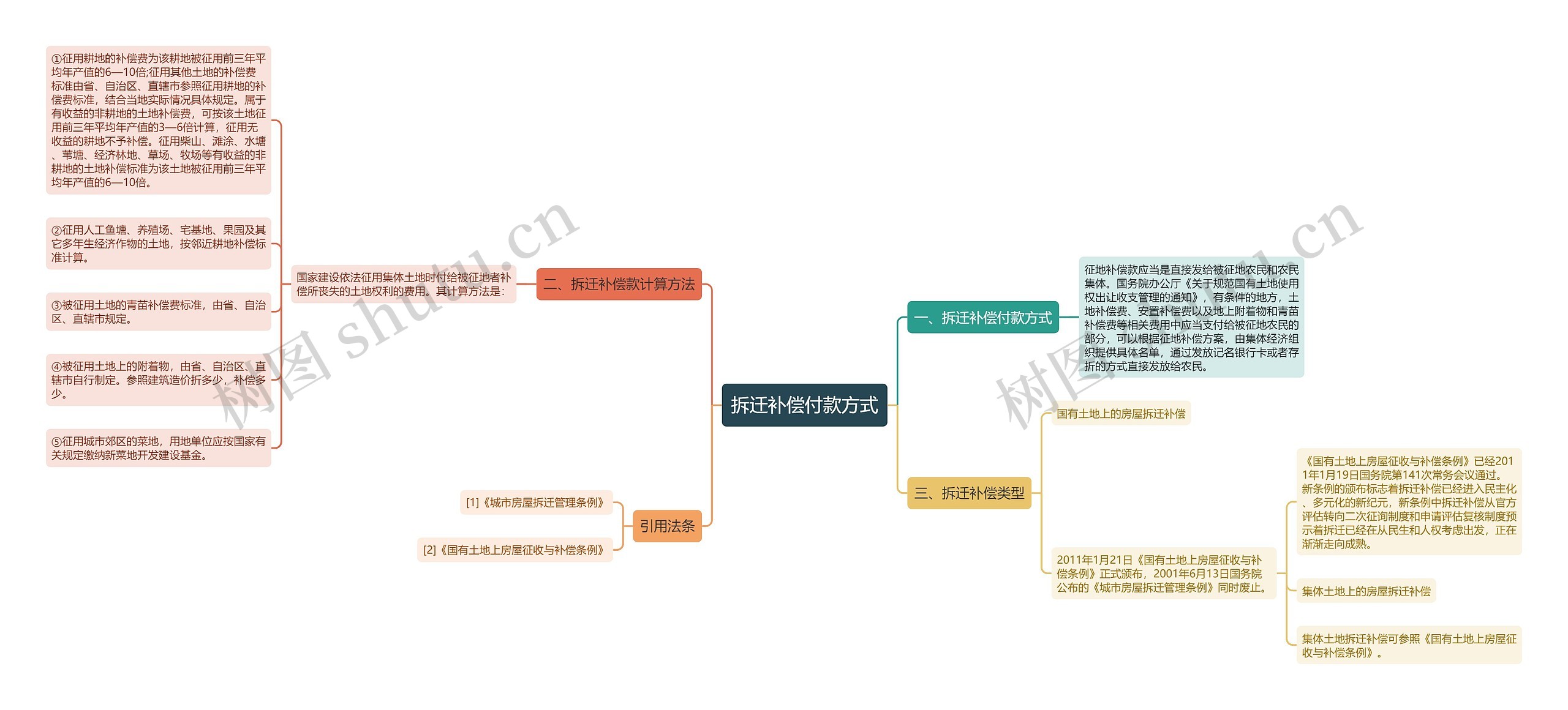树图思维导图提供《拆迁补偿付款方式》在线思维导图免费制作,点击“编辑”按钮,可对《拆迁补偿付款方式》进行在线思维导图编辑,本思维导图属于思维导图模板主题,文件编号是:cfa32ce97b82e88321a055dd3a4820f7