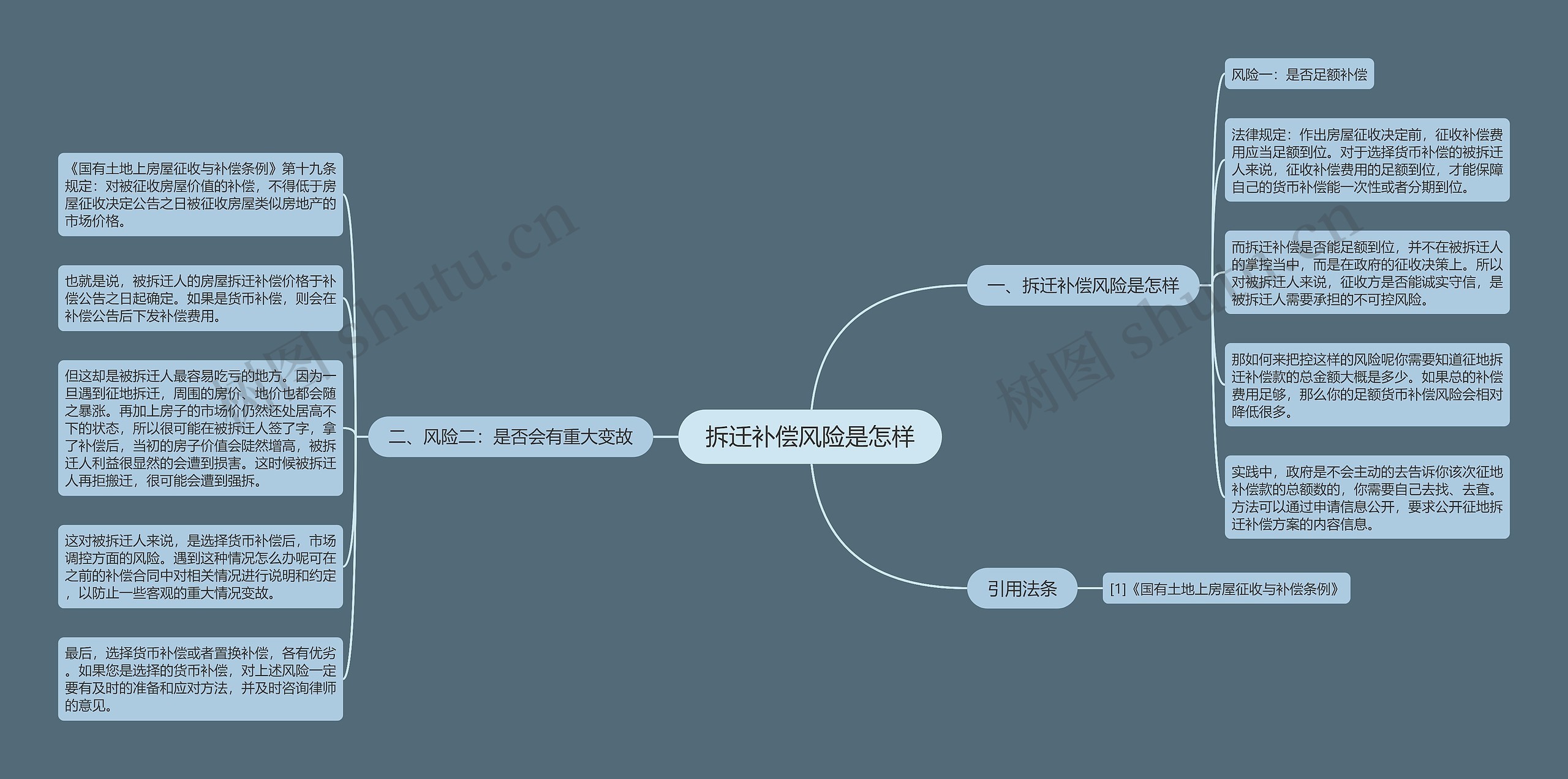 树图思维导图提供《拆迁补偿风险是怎样》在线思维导图免费制作,点击“编辑”按钮,可对《拆迁补偿风险是怎样》进行在线思维导图编辑,本思维导图属于思维导图模板主题,文件编号是:fcb70d27def50a754a18bde24fc70d0c