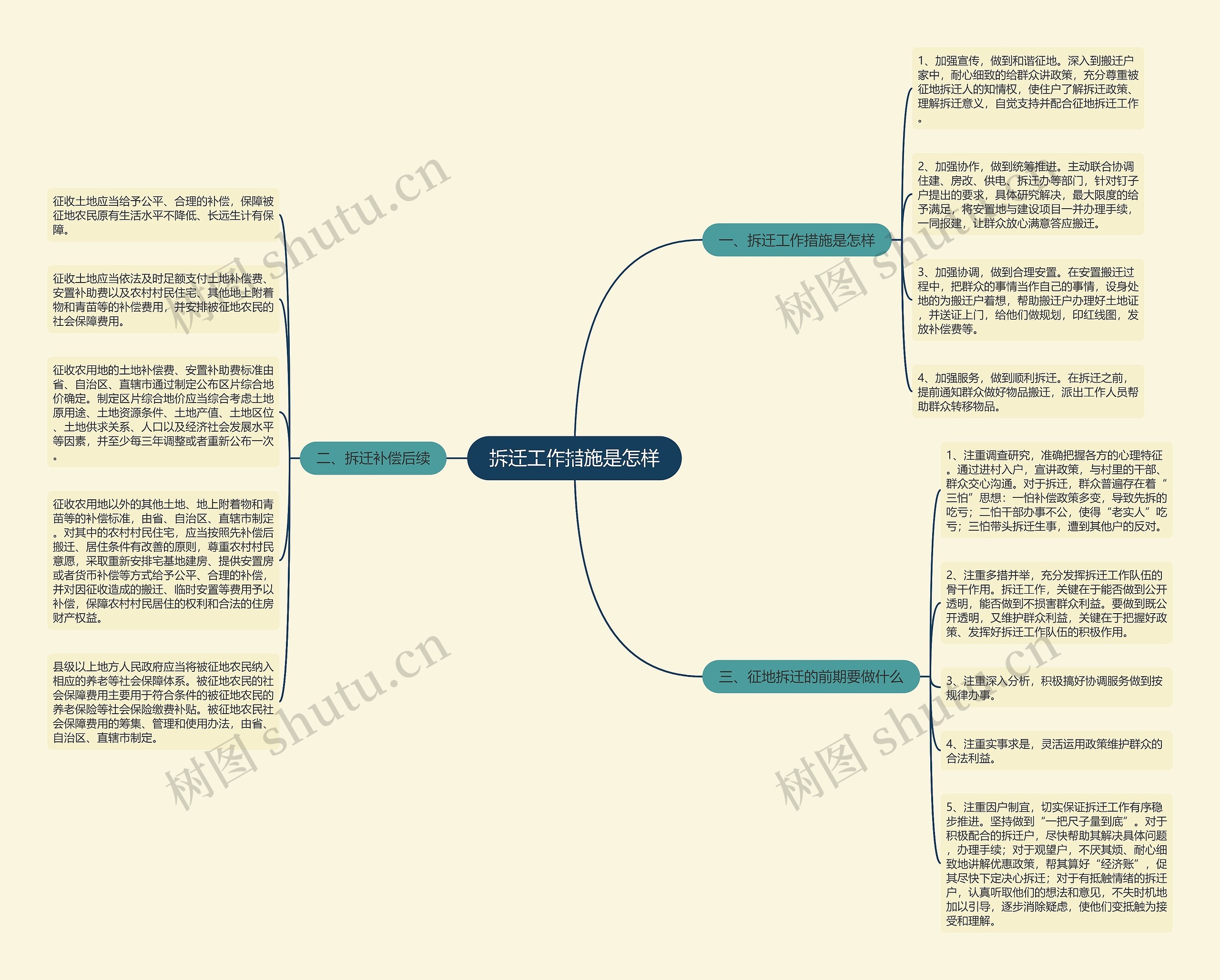 树图思维导图提供《拆迁工作措施是怎样》在线思维导图免费制作,点击“编辑”按钮,可对《拆迁工作措施是怎样》进行在线思维导图编辑,本思维导图属于思维导图模板主题,文件编号是:f4883ccd2903a3e087f6a7c1e942eb6c