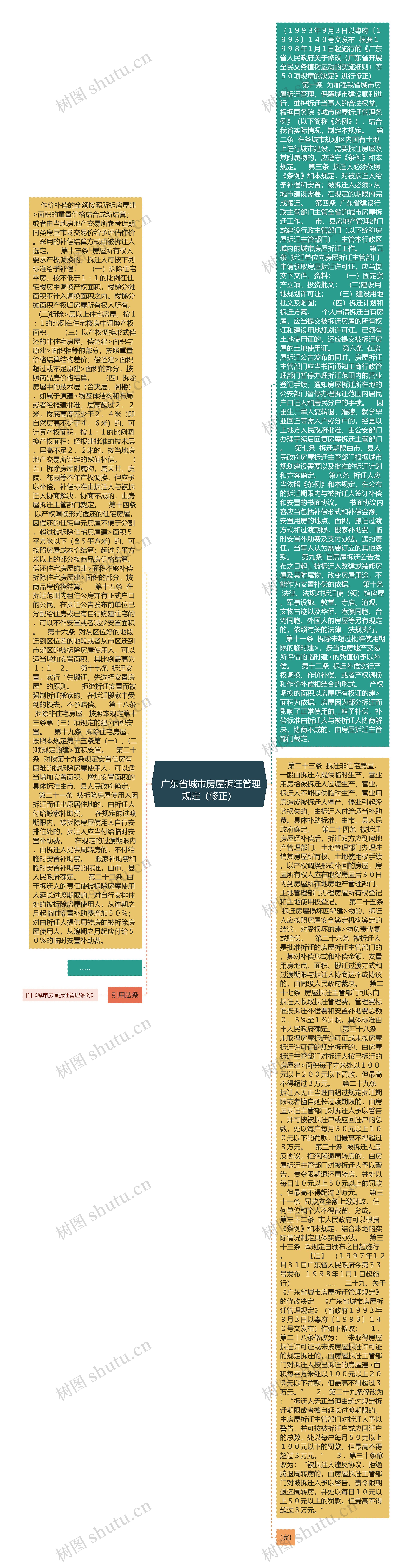 (1993年9月3日以粤府〔1993〕140号文发布 根据1998年1月1日起施行的《广东省人民政府关于修改〈广东省开展全民义务植树运动的实施细则〉等50项规章的决定》进行修正) 第一条 为加强我省城市房屋拆迁管理,保障城市建设顺利进行,维护拆迁当事人的合法权益,根据国务院《城市房屋拆迁管理条例》(以下简称《条例》),结合我省实际情况,制定本规定。 第二条 在各城市规划区内国有土地上进行城市建设,需要拆迁房屋及其附属物的,应遵守《条例》和本规定。 第三条 拆迁人必须依照《条例》和本规定,对被拆迁人给予补偿和安置;被拆迁人必须>从城市建设需要,在规定的期限内完成搬迁。 第四条 广东省建设行政主管部门主管全省的城市房屋拆迁工作。 市、县房地产管理部门或建设行政主管部门(以下统称房屋拆迁主管部门),主管本行政区域内的城市房屋拆迁工作。 第五条 拆迁单位向房屋拆迁主管部门申请领取房屋拆迁许可证,应当提交下文件、资料: (一)固定资产立项、投资批文; (二)建设用地规划许可证; (三)建设用地批文及附图; (四)拆迁计划和拆迁方案。 个人申请拆迁自有房屋,应当提交被拆迁房屋的所有权证和建设用地规划许可证。已领有土地使用证的,还应提交被拆迁房屋的土地使用证。 第六条 在房屋拆迁公告发布的同时,房屋拆迁主管部门应当书面通知工商行政管理部门暂停办理拆迁范围内的营业登记手续;通知房屋拆迁所在地的公安部门暂停办理拆迁范围内居民户口迁入和居民分户的手续。 因出生、军人复转退、婚嫁、就学毕业回迁等需入户或分户的,经县以上地方人民政府批准,由公安部门办理手续后回复房屋拆迁主管部门。 第七条 拆迁期限由市、县人民政府房屋拆迁主管部门根据城市规划建设需要以及批准的拆迁计划和方案确定。 第八条 拆迁人应当依照《条例》和本规定,在公布的拆迁期限内与被拆迁人签订补偿和安置的书面协议。 书面协议内容应当包括补偿形式和补偿金额,安置用房的地点、面积,搬迁过渡方式和过渡期限,搬家补助费、临时安置补助费及支付办法,违约责任,当事人认为需要订立的其他条款。 第九条 自房屋拆迁公告发布之日起,被拆迁人改建或装修房屋及其附属物,改变房屋用途,不能作为安置补偿的依据。 第十条 法律、法规对拆迁使(领)馆房屋、军事设施、教堂、寺庙、道观、文物古迹以及华侨、港澳同胞、台湾同胞、外国人的房屋等另有规定的,依照有关的法律、法规执行。 第十一条 拆除未超过批准使用期限的临时建>,按当地房地产交易所评估的临时建>的残值价予以补偿。 第十二条 拆迁补偿实行产权调换、作价补偿、或者产权调换和作价补偿相结合的形式。 产权调换的面积以房屋所有权证的建>面积为依据。房屋因为部分拆迁而影响了正常使用的,应予补偿,补偿标准由拆迁人与被拆迁人协商解决,协商不成的,由房屋拆迁主管部门裁定。