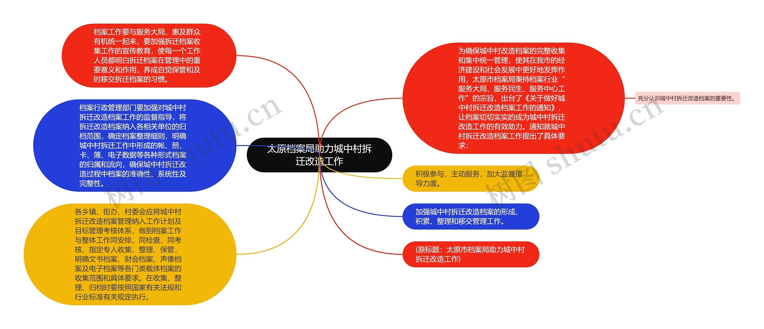 为确保城中村改造档案的完整收集和集中统一管理,使其在我市的经济建设和社会发展中更好地发挥作用,太原市档案局秉持档案行业“服务大局、服务民生、服务中心工作”的宗旨,出台了《关于做好城中村拆迁改造档案工作的通知》,让档案切切实实的成为城中村拆迁改造工作的有效助力。通知就城中村拆迁改造档案工作提出了具体要求: