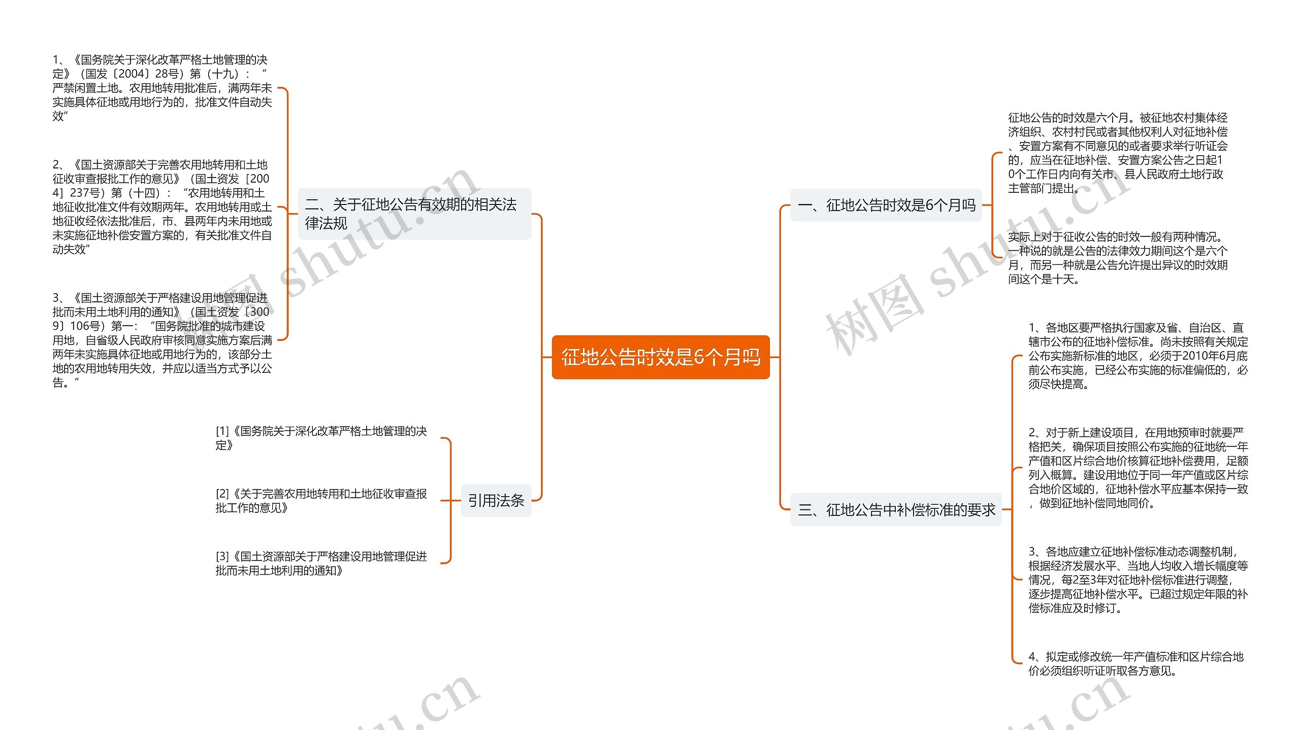 树图思维导图提供《征地公告时效是6个月吗》在线思维导图免费制作,点击“编辑”按钮,可对《征地公告时效是6个月吗》进行在线思维导图编辑,本思维导图属于思维导图模板主题,文件编号是:44d342dd203b83d7d0a526741b162db7
