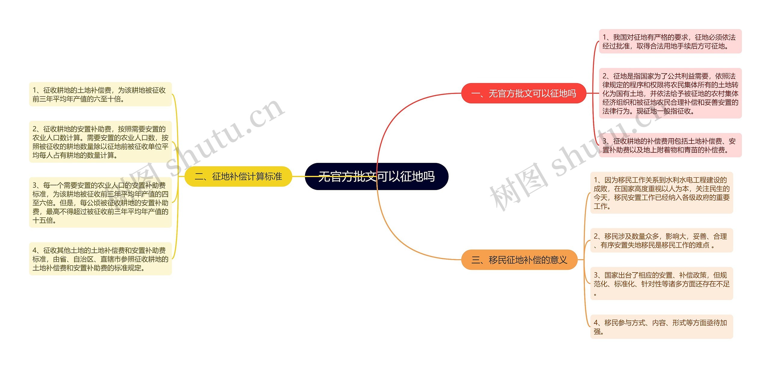 树图思维导图提供《无官方批文可以征地吗》在线思维导图免费制作,点击“编辑”按钮,可对《无官方批文可以征地吗》进行在线思维导图编辑,本思维导图属于思维导图模板主题,文件编号是:bfbe20dbfd67c045865f7c4a4e5dbb43