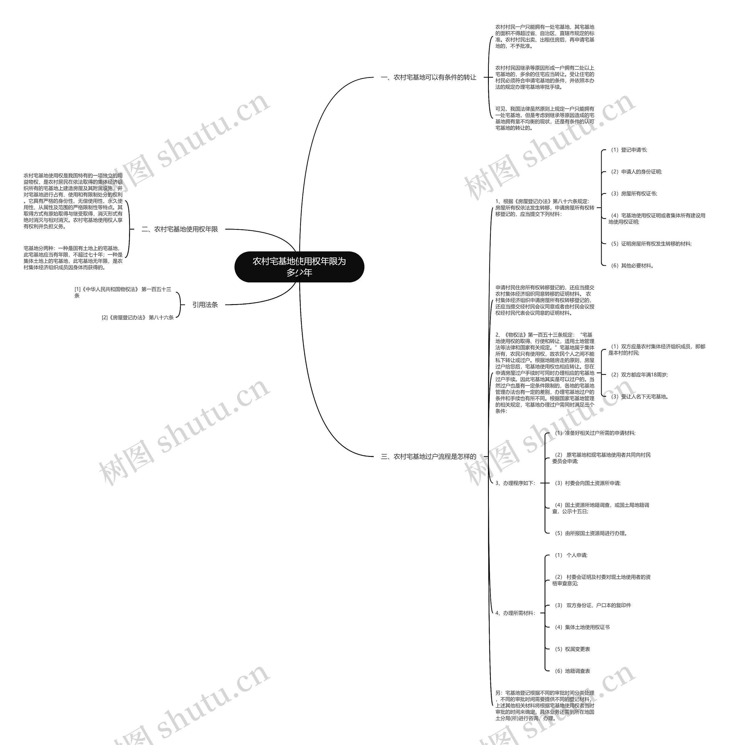 树图思维导图提供《农村宅基地使用权年限为多少年》在线思维导图免费制作,点击“编辑”按钮,可对《农村宅基地使用权年限为多少年》进行在线思维导图编辑,本思维导图属于思维导图模板主题,文件编号是:f5e9552d155b30b3dadfc50109fafb3f