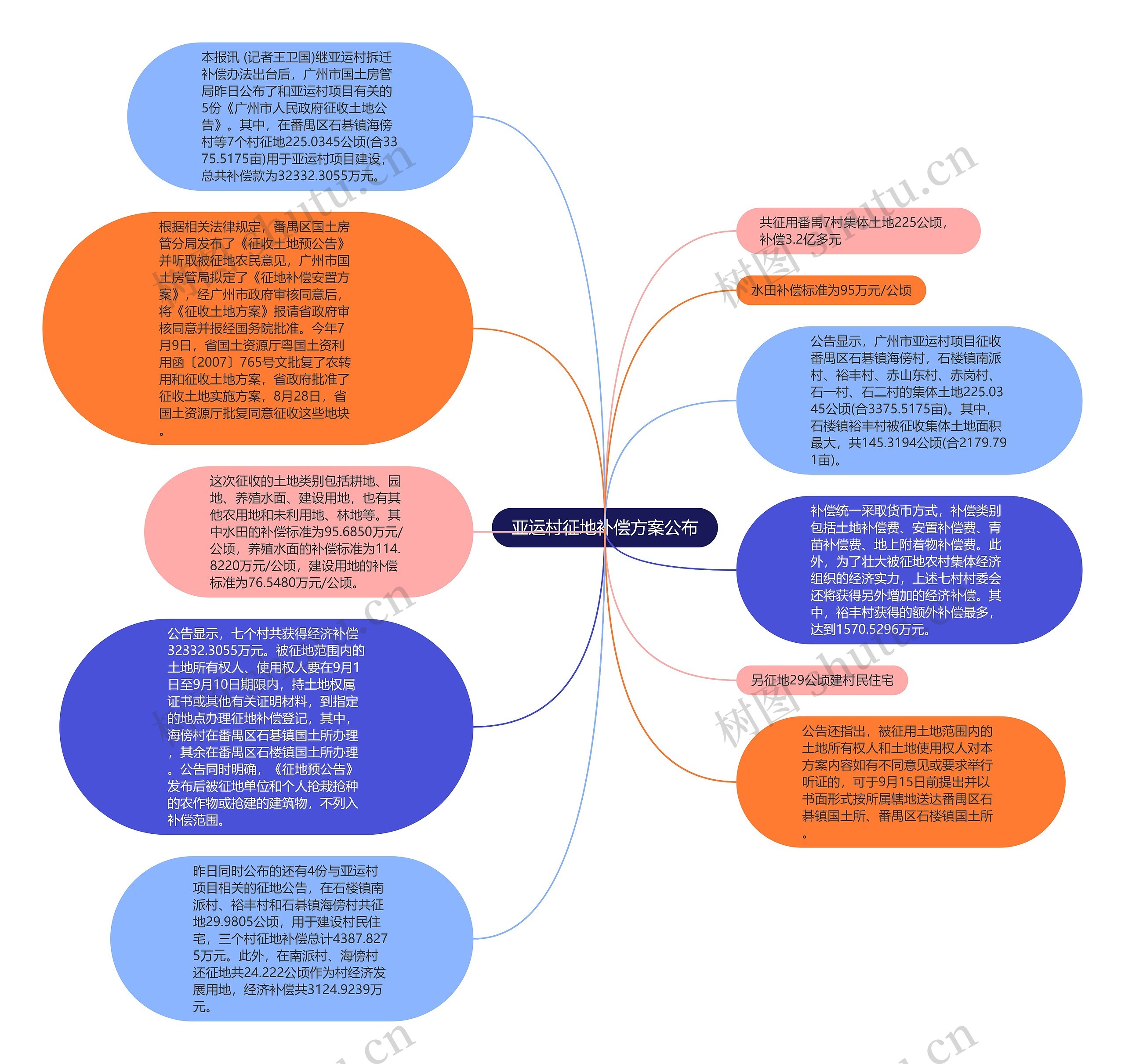本报讯 (记者王卫国)继亚运村拆迁补偿办法出台后,广州市国土房管局昨日公布了和亚运村项目有关的5份《广州市人民政府征收土地公告》。其中,在番禺区石碁镇海傍村等7个村征地225.0345公顷(合3375.5175亩)用于亚运村项目建设,总共补偿款为32332.3055万元。
