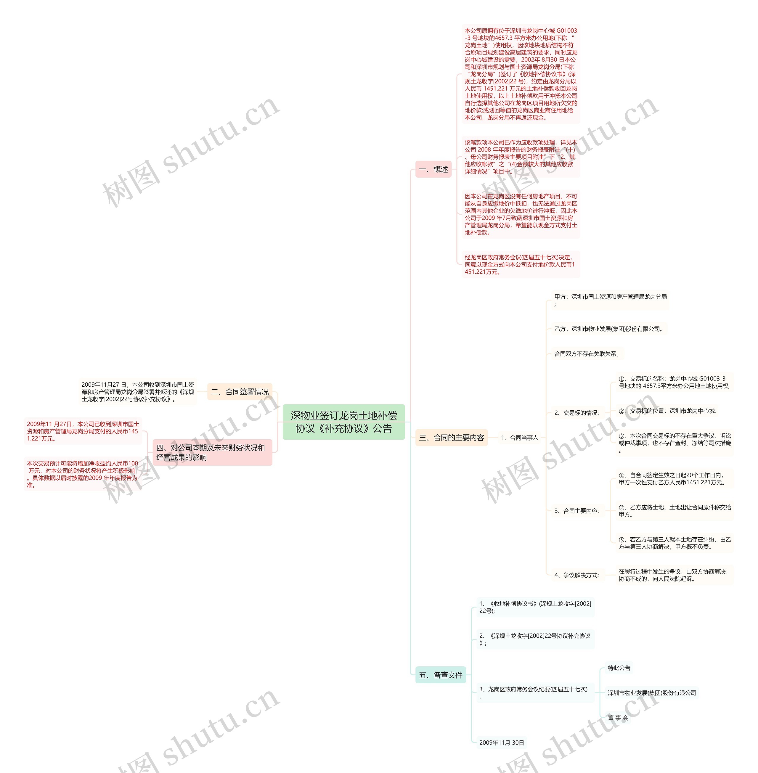 因本公司在龙岗区没有任何房地产项目,不可能从自身应缴地价中抵扣,也无法通过龙岗区范围内其他企业的欠缴地价进行冲抵,因此本公司于2009 年7月致函深圳市国土资源和房产管理局龙岗分局,希望能以现金方式支付土地补偿款。