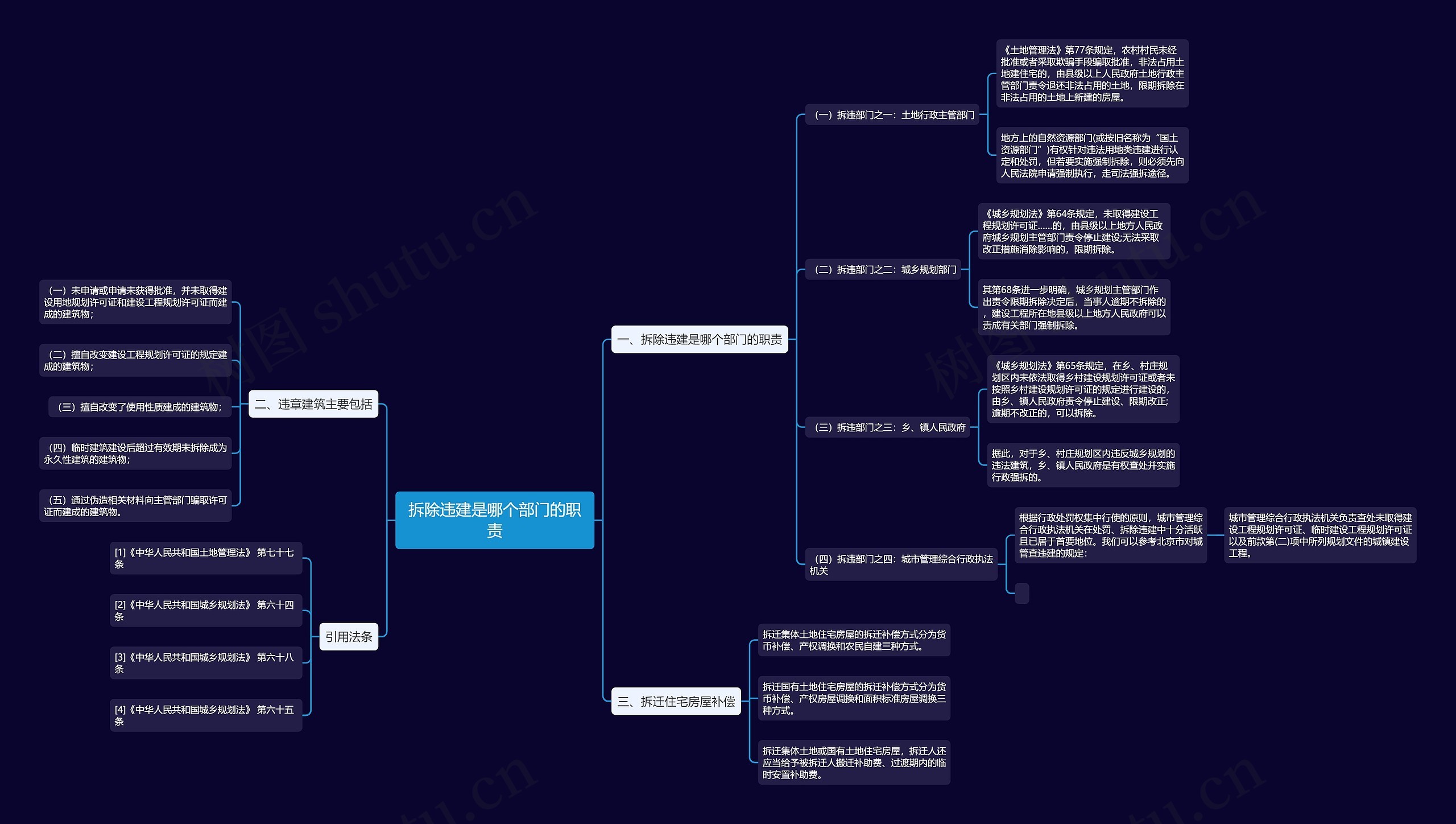 树图思维导图提供《拆除违建是哪个部门的职责》在线思维导图免费制作,点击“编辑”按钮,可对《拆除违建是哪个部门的职责》进行在线思维导图编辑,本思维导图属于思维导图模板主题,文件编号是:8b5489c19ab21049a75b51e1e4075a37