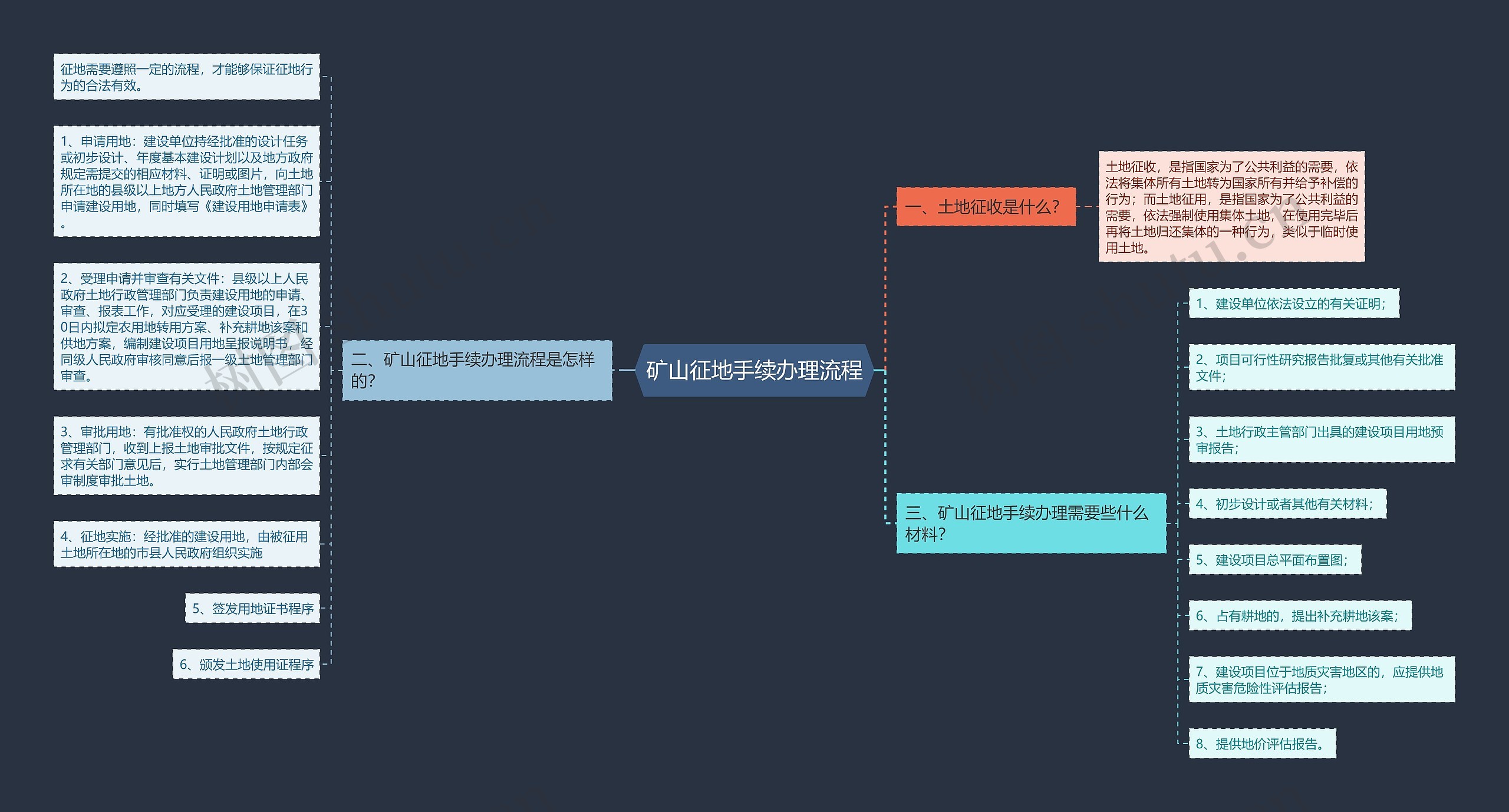 树图思维导图提供《矿山征地手续办理流程》在线思维导图免费制作,点击“编辑”按钮,可对《矿山征地手续办理流程》进行在线思维导图编辑,本思维导图属于思维导图模板主题,文件编号是:5fa31a68e09d1e9ffb89d633a7cd3bd1
