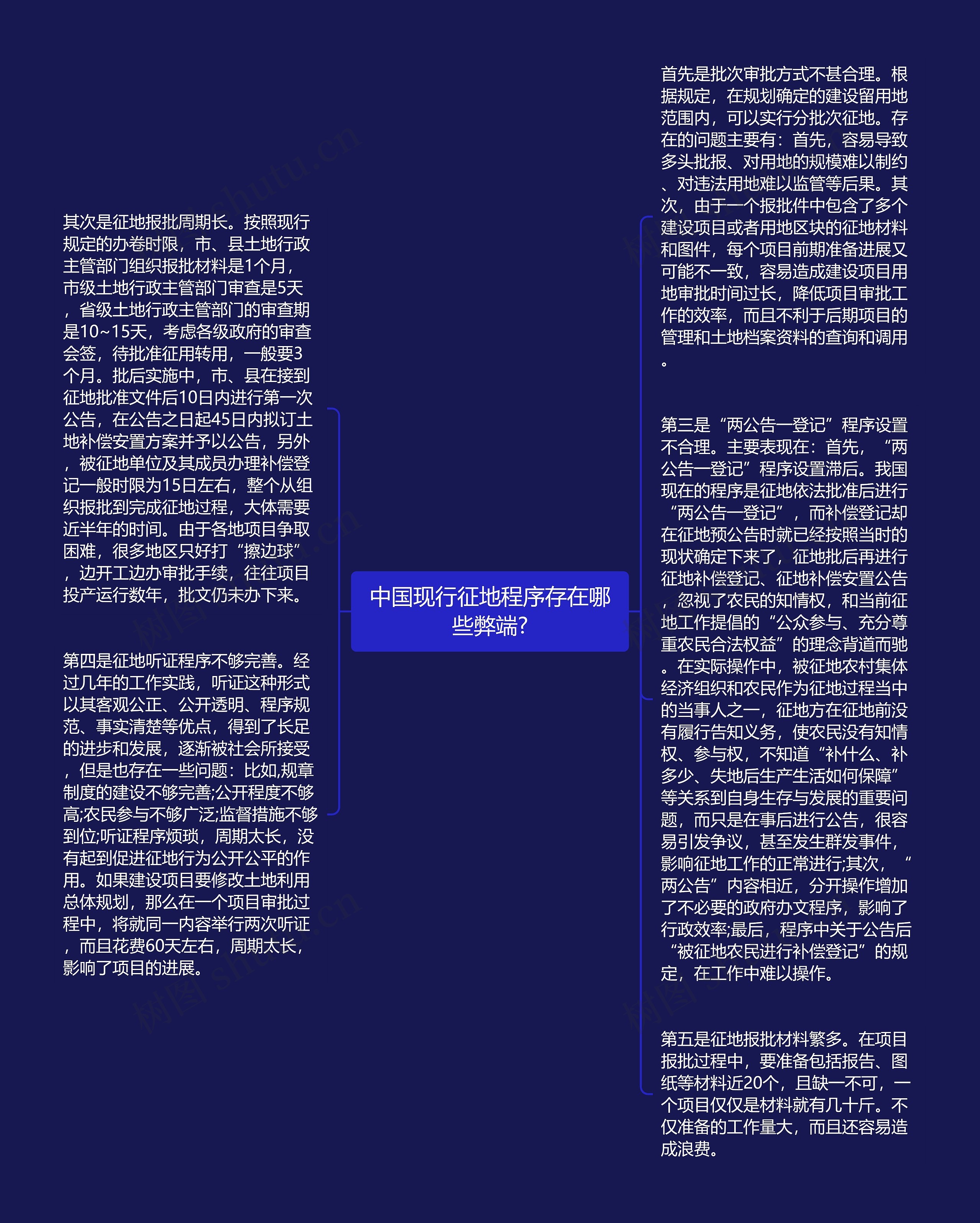 第四是征地听证程序不够完善。经过几年的工作实践,听证这种形式以其客观公正、公开透明、程序规范、事实清楚等优点,得到了长足的进步和发展,逐渐被社会所接受,但是也存在一些问题:比如,规章制度的建设不够完善;公开程度不够高;农民参与不够广泛;监督措施不够到位;听证程序烦琐,周期太长,没有起到促进征地行为公开公平的作用。如果建设项目要修改土地利用总体规划,那么在一个项目审批过程中,将就同一内容举行两次听证,而且花费60天左右,周期太长,影响了项目的进展。