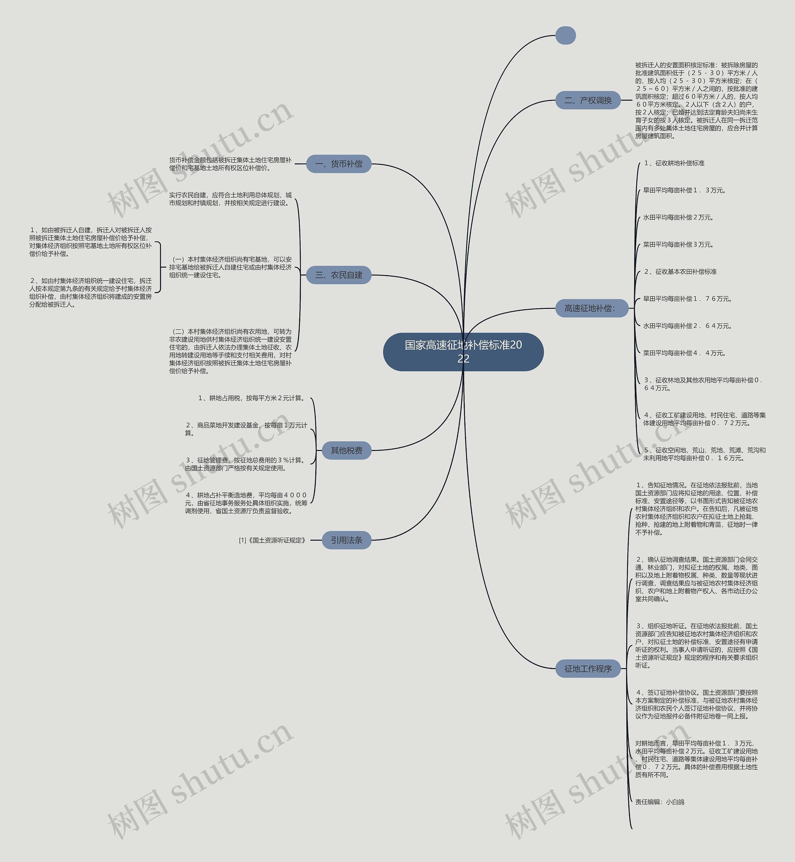 树图思维导图提供《国家高速征地补偿标准2022》在线思维导图免费制作,点击“编辑”按钮,可对《国家高速征地补偿标准2022》进行在线思维导图编辑,本思维导图属于思维导图模板主题,文件编号是:94df40373573840aa7ac4966f9a4ac5f