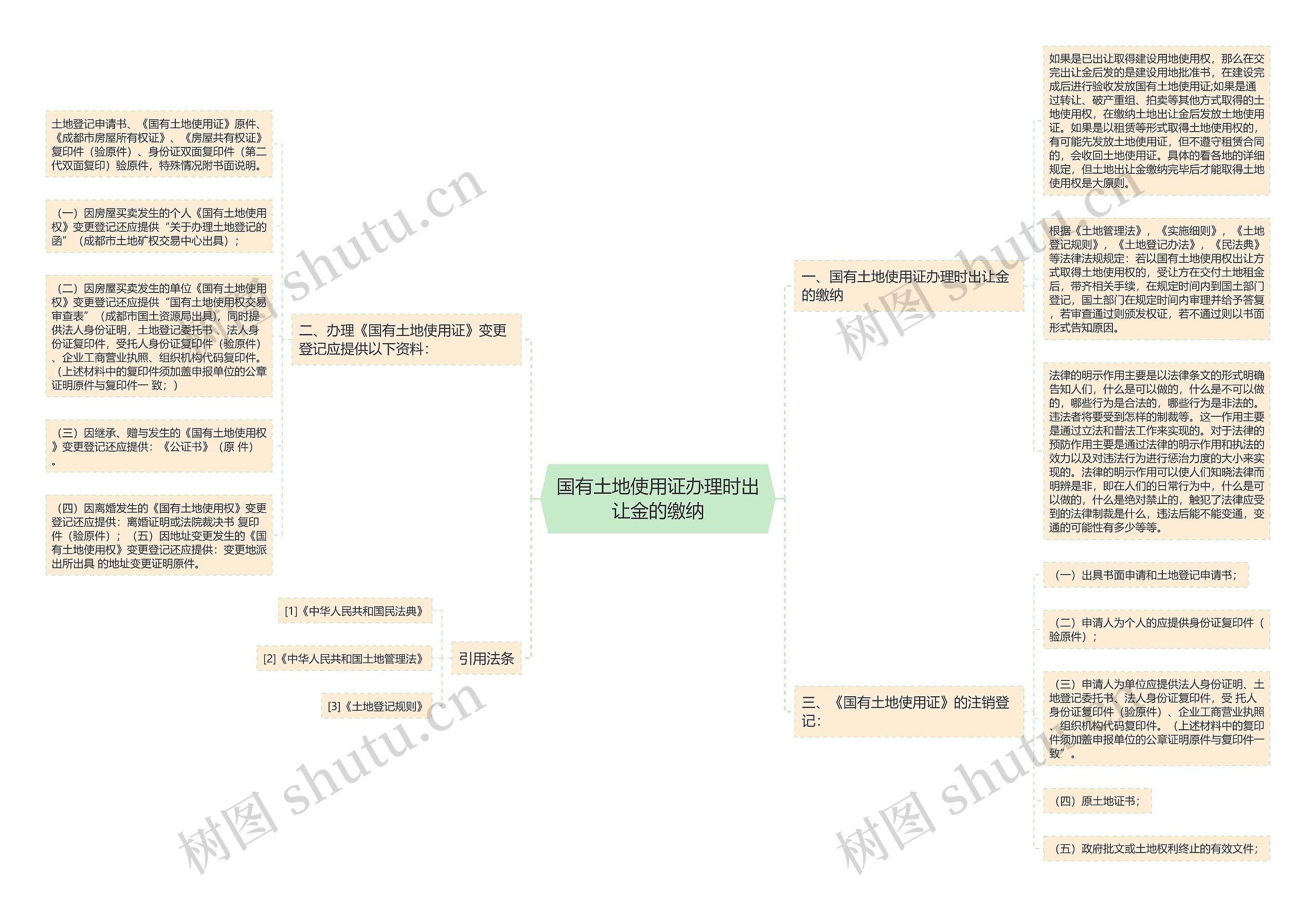 树图思维导图提供《国有土地使用证办理时出让金的缴纳》在线思维导图免费制作,点击“编辑”按钮,可对《国有土地使用证办理时出让金的缴纳》进行在线思维导图编辑,本思维导图属于思维导图模板主题,文件编号是:bdb893645b352d893b484a15f222345b