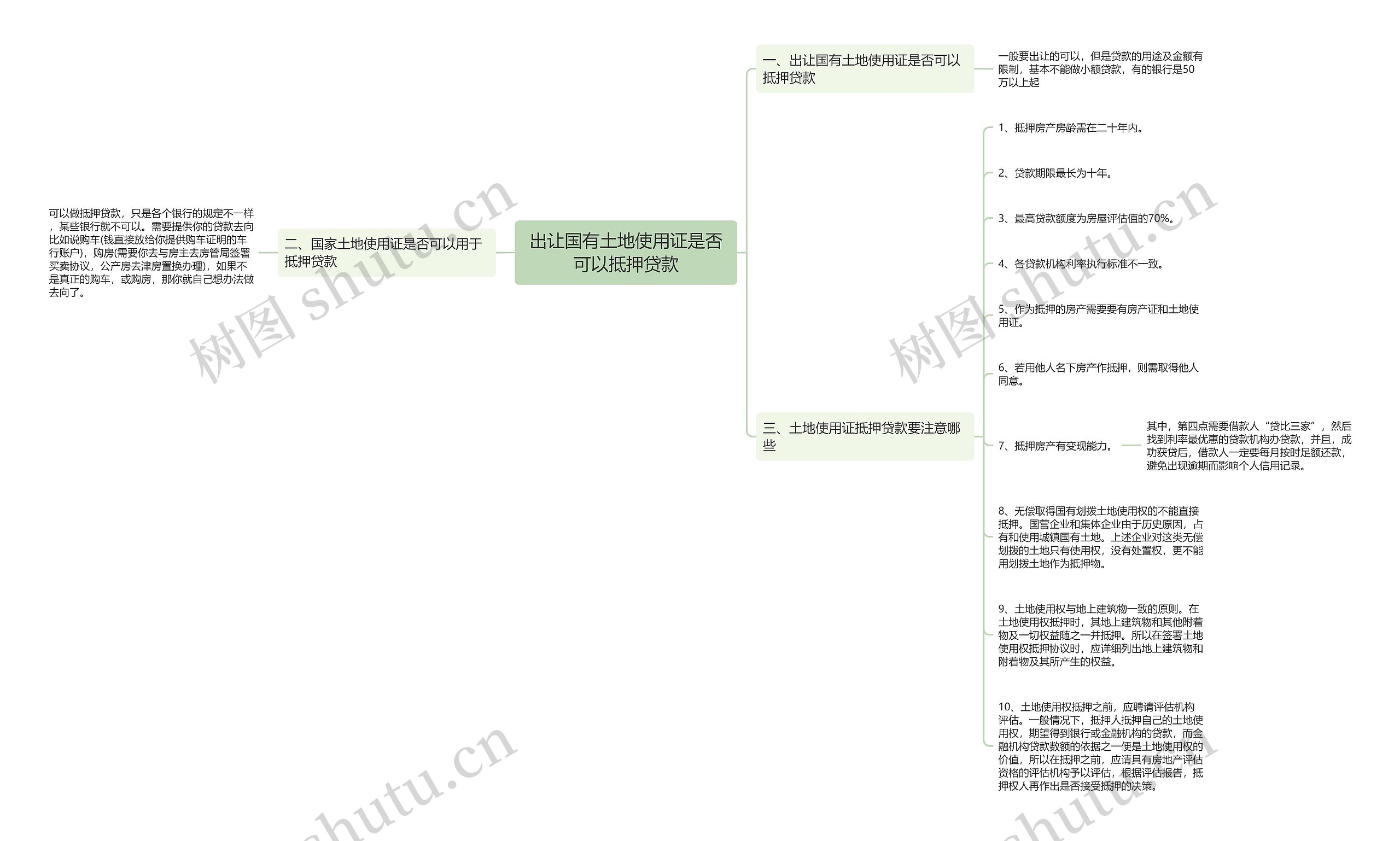 树图思维导图提供《出让国有土地使用证是否可以抵押贷款》在线思维导图免费制作,点击“编辑”按钮,可对《出让国有土地使用证是否可以抵押贷款》进行在线思维导图编辑,本思维导图属于思维导图模板主题,文件编号是:eb7c518e0b120821291b9c7468a99126