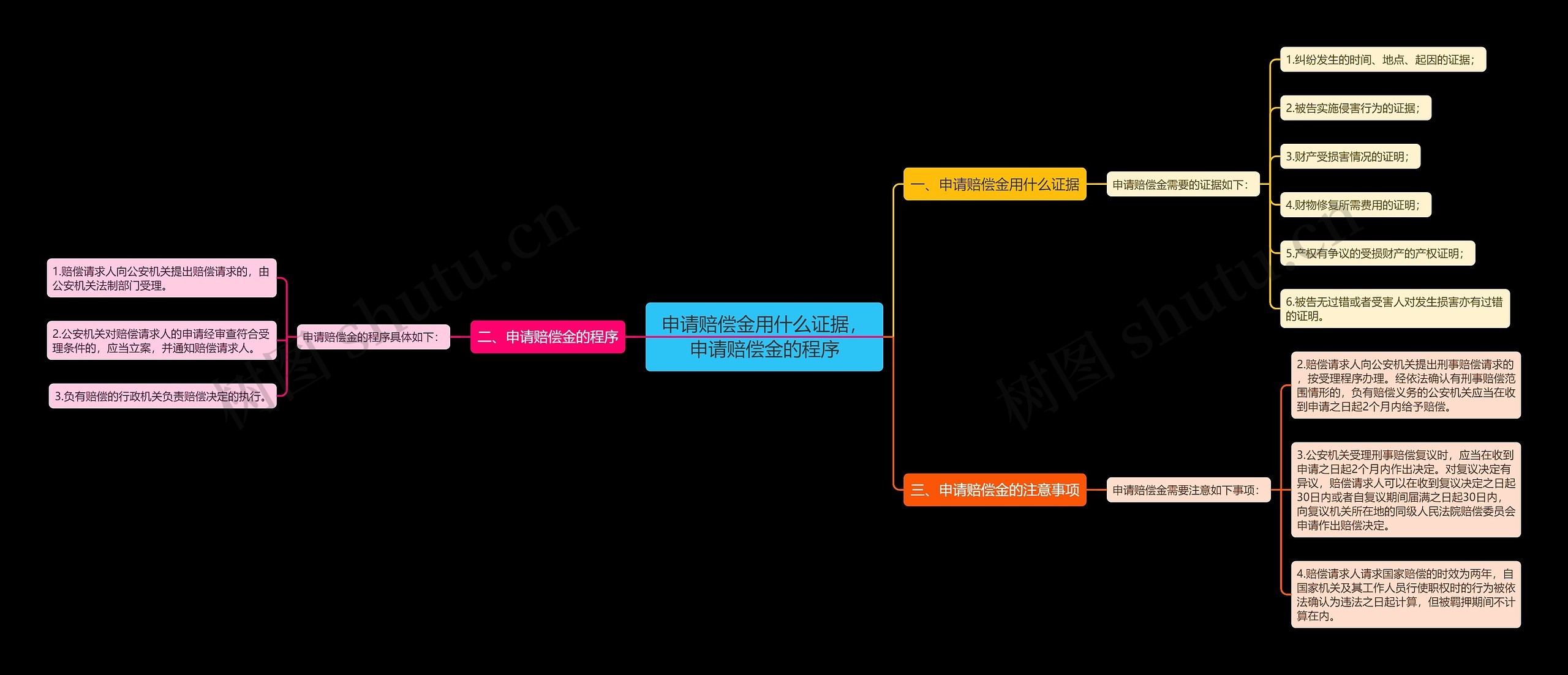 树图思维导图提供《申请赔偿金用什么证据,申请赔偿金的程序》在线思维导图免费制作,点击“编辑”按钮,可对《申请赔偿金用什么证据,申请赔偿金的程序》进行在线思维导图编辑,本思维导图属于思维导图模板主题,文件编号是:6bd06a9189b11141ffe71fa3336ba666