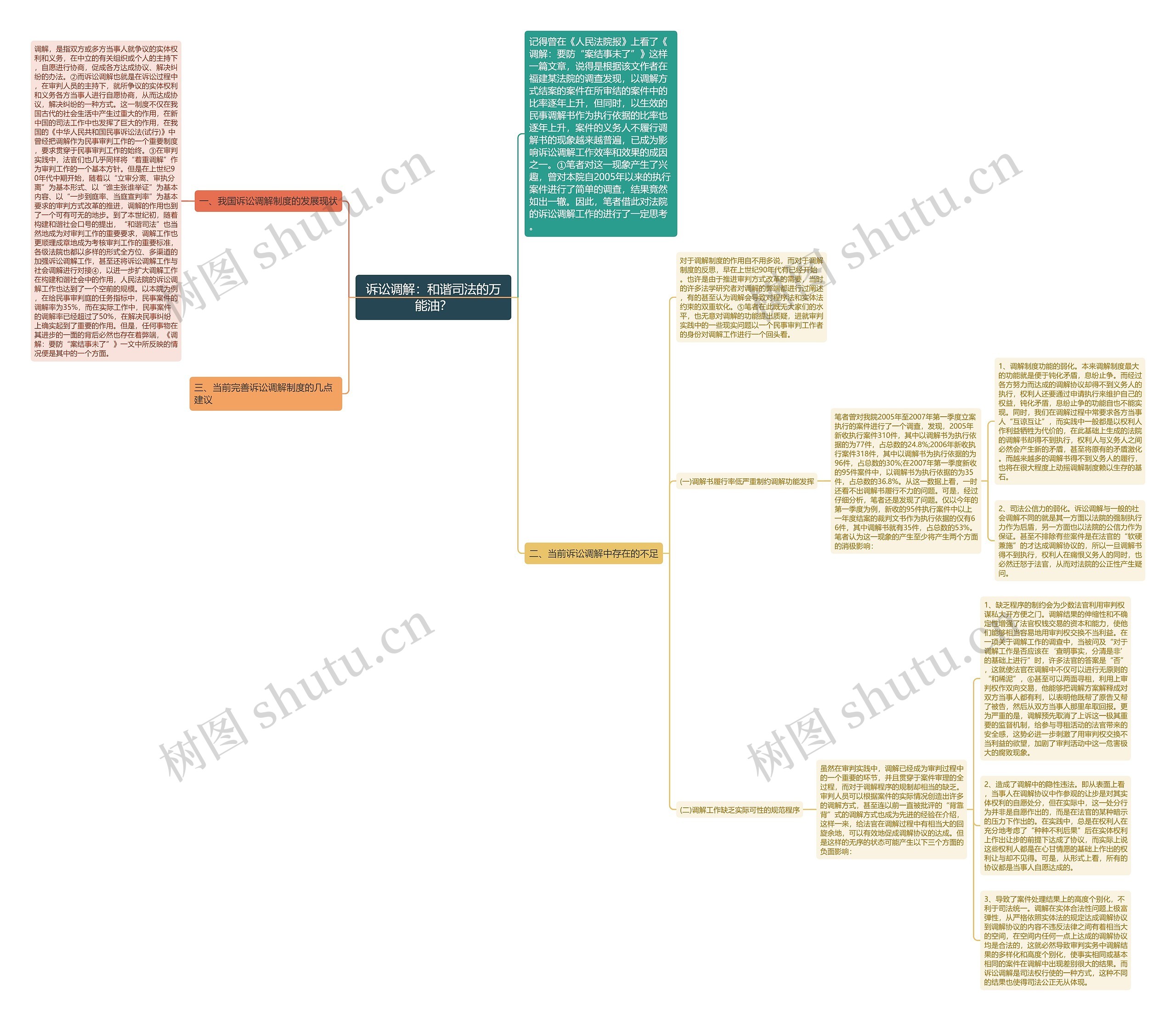 3、导致了案件处理结果上的高度个别化,不利于司法统一。调解在实体合法性问题上极富弹性,从严格依照实体法的规定达成调解协议到调解协议的内容不违反法律之间有着相当大的空间,在空间内任何一点上达成的调解协议均是合法的,这就必然导致审判实务中调解结果的多样化和高度个别化,使事实相同或基本相同的案件在调解中出现差别很大的结果。而诉讼调解是司法权行使的一种方式,这种不同的结果也使得司法公正无从体现。
