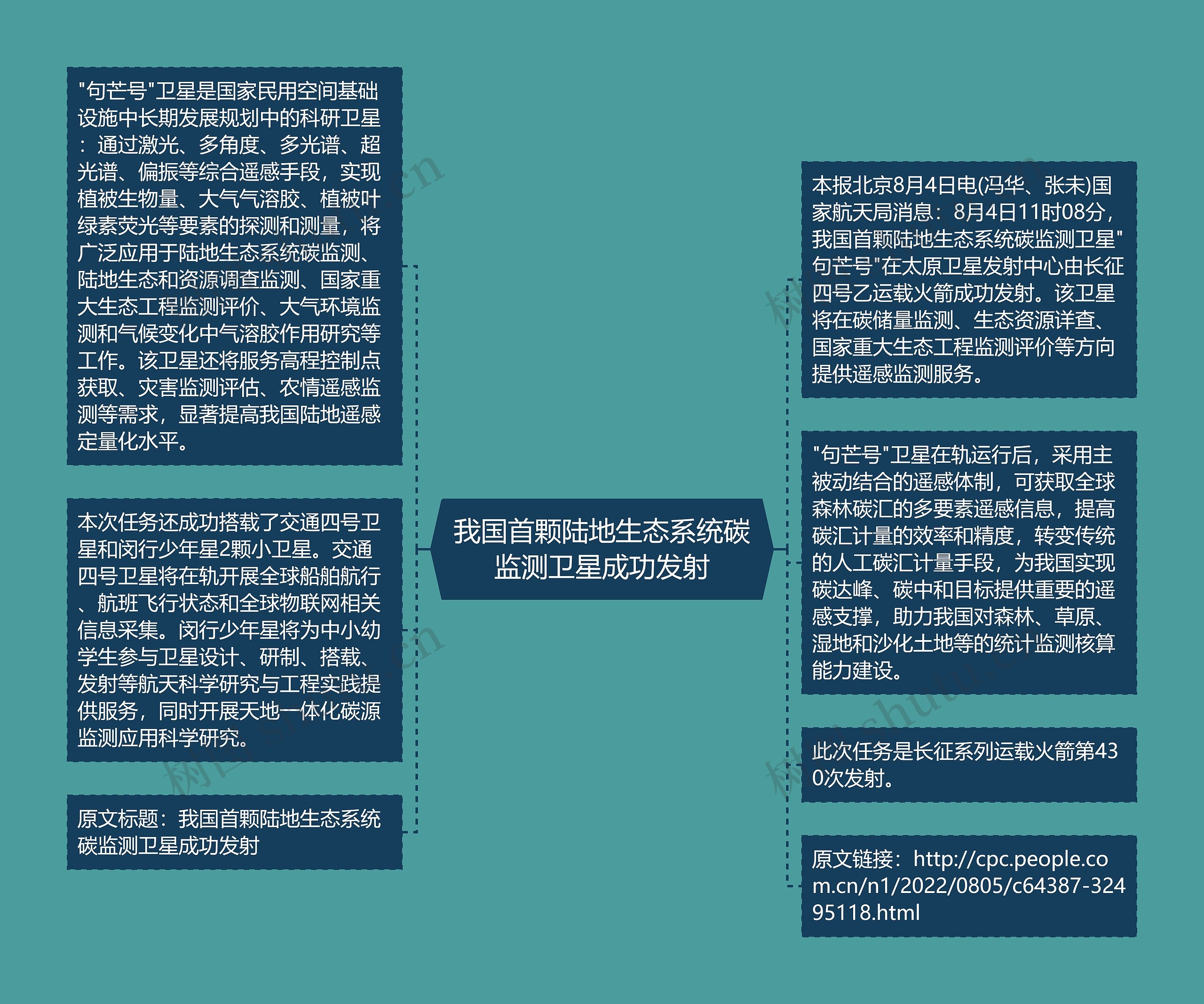 本报北京8月4日电(冯华、张未)国家航天局消息:8月4日11时08分,我国首颗陆地生态系统碳监测卫星"句芒号"在太原卫星发射中心由长征四号乙运载火箭成功发射。该卫星将在碳储量监测、生态资源详查、国家重大生态工程监测评价等方向提供遥感监测服务。