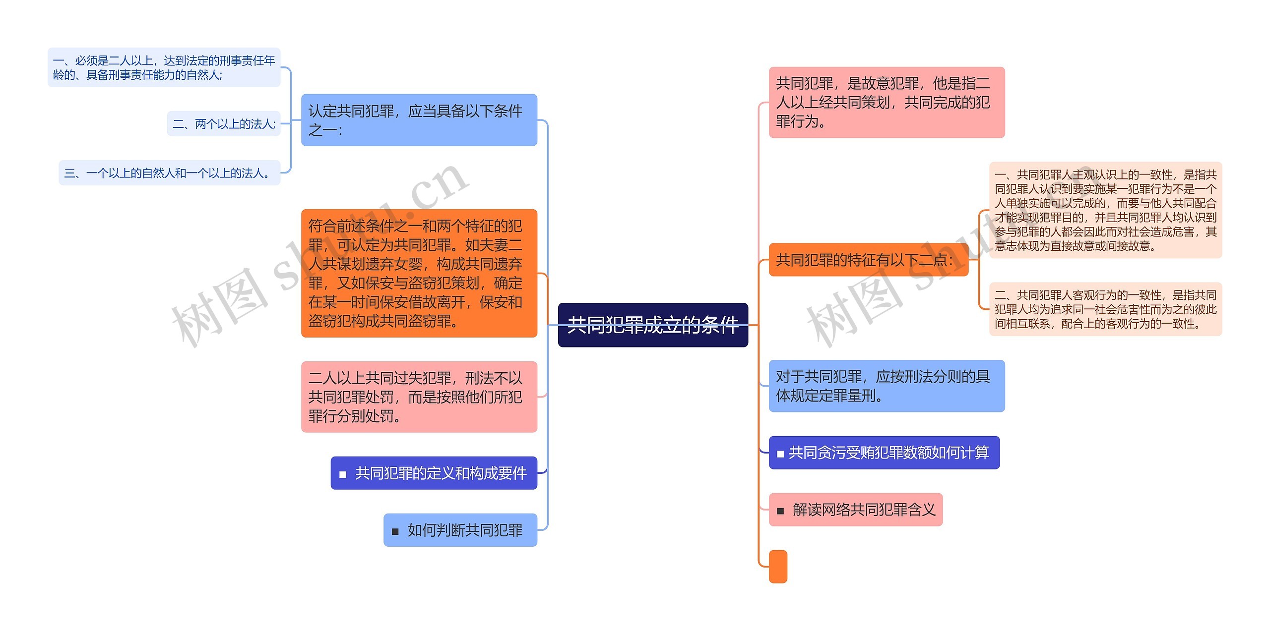 树图思维导图提供《共同犯罪成立的条件》在线思维导图免费制作,点击“编辑”按钮,可对《共同犯罪成立的条件》进行在线思维导图编辑,本思维导图属于思维导图模板主题,文件编号是:26ed21f712779e5d8f3d89523710cc19