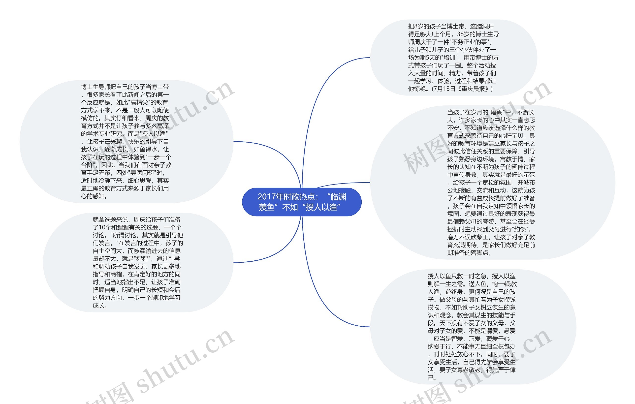 授人以鱼只救一时之急,授人以渔则解一生之需。送人鱼,饱一顿;教人渔,益终身,更何况是自己的孩子。做父母的与其忙着为子女攒钱攒物,不如帮助子女树立谋生的意识和观念,教会其谋生的技能与手段。天下没有不爱子女的父母,父母对子女的爱,不能是溺爱,愚爱,应当是智爱,巧爱,藏爱于心,纳爱于行,不能事无巨细全权包办,时时处处放心不下。同时,要子女享受生活,自己得先学会享受生活,要子女尊老敬老,得先严于律己。