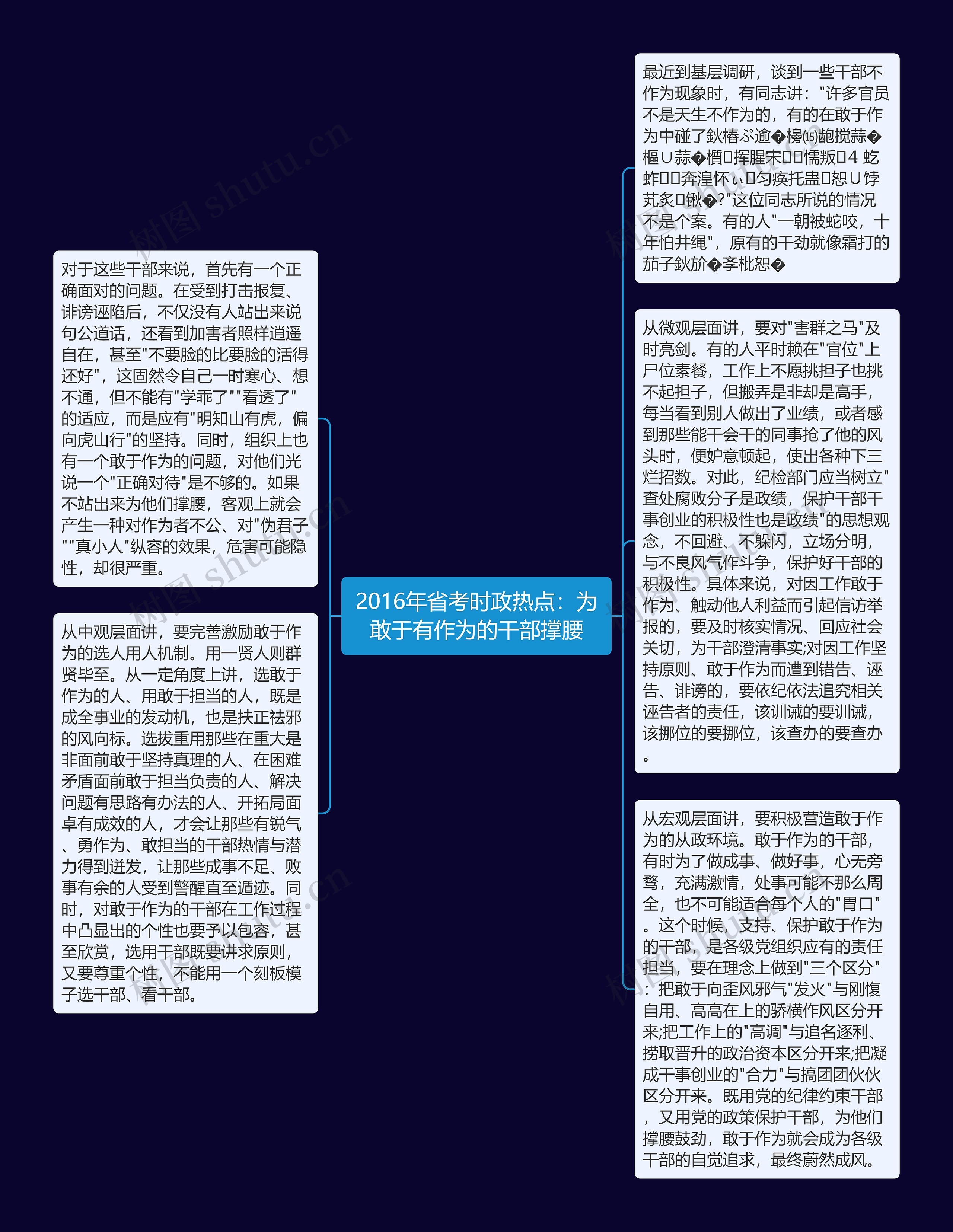 从宏观层面讲,要积极营造敢于作为的从政环境。敢于作为的干部,有时为了做成事、做好事,心无旁骛,充满激情,处事可能不那么周全,也不可能适合每个人的"胃口"。这个时候,支持、保护敢于作为的干部,是各级党组织应有的责任担当,要在理念上做到"三个区分":把敢于向歪风邪气"发火"与刚愎自用、高高在上的骄横作风区分开来;把工作上的"高调"与追名逐利、捞取晋升的政治资本区分开来;把凝成干事创业的"合力"与搞团团伙伙区分开来。既用党的纪律约束干部,又用党的政策保护干部,为他们撑腰鼓劲,敢于作为就会成为各级干部的自觉追求,最终蔚然成风。