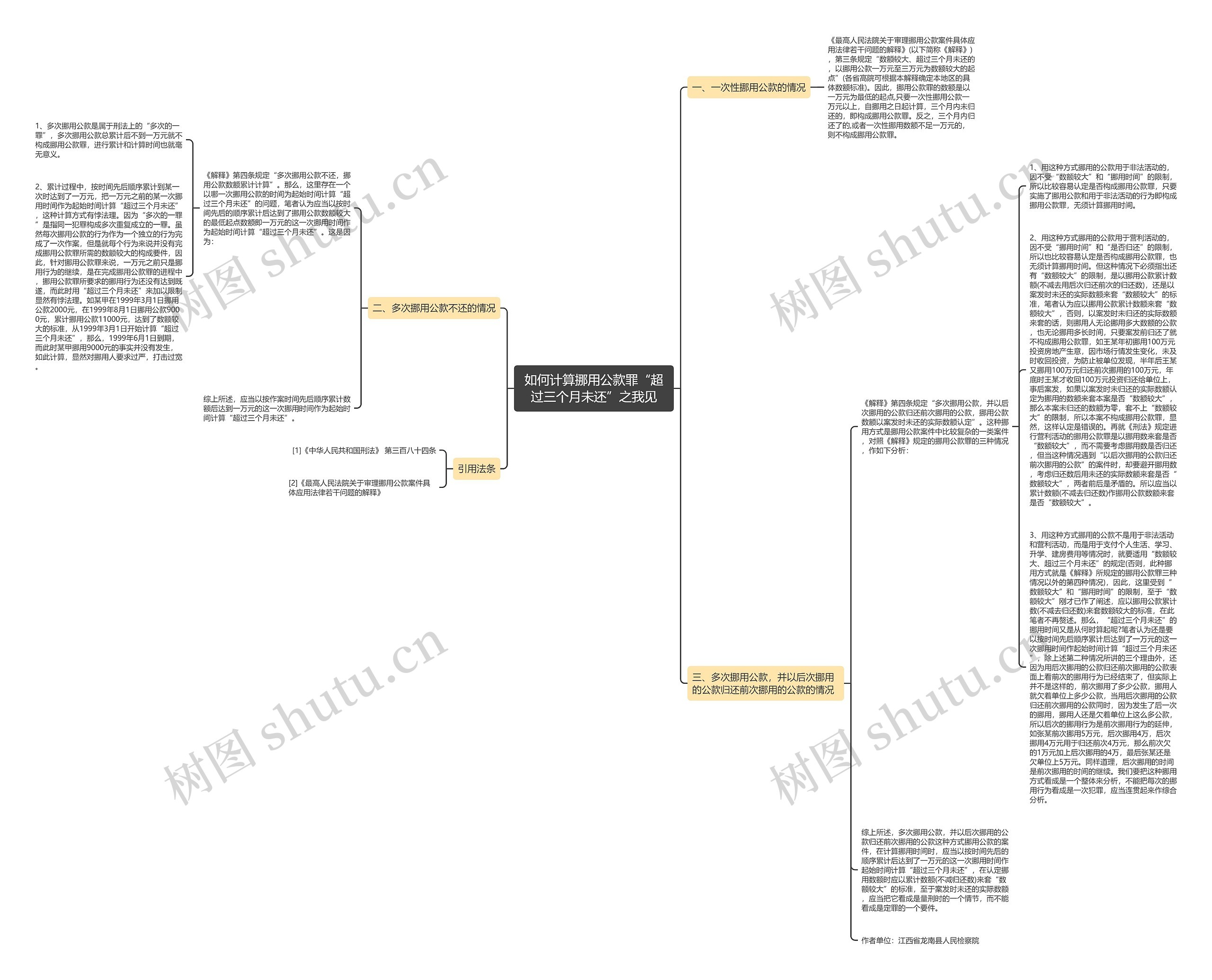树图思维导图提供《如何计算挪用公款罪“超过三个月未还”之我见》在线思维导图免费制作,点击“编辑”按钮,可对《如何计算挪用公款罪“超过三个月未还”之我见》进行在线思维导图编辑,本思维导图属于思维导图模板主题,文件编号是:aaf171376d0774fc8be9786afa0d6ccc