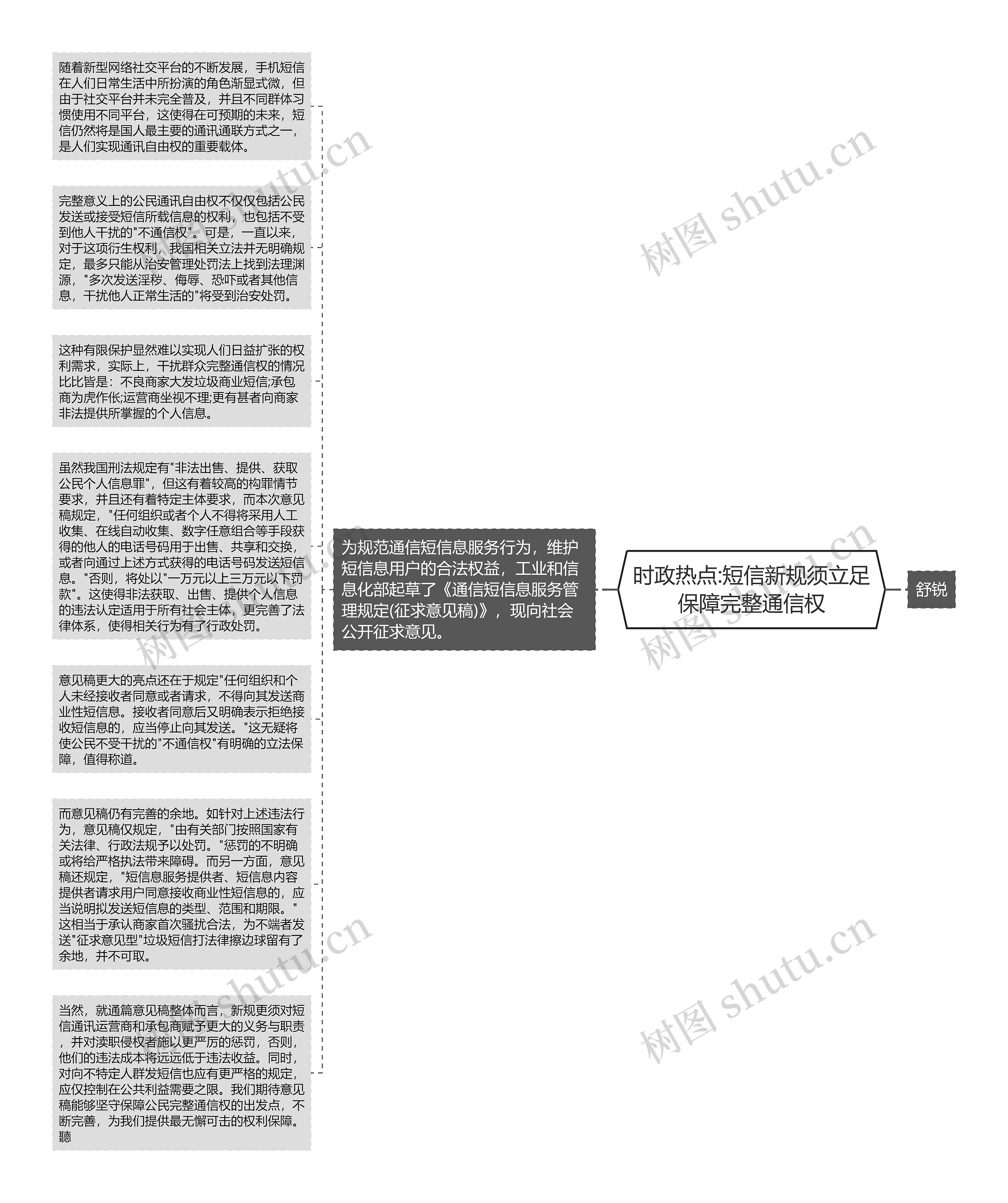 完整意义上的公民通讯自由权不仅仅包括公民发送或接受短信所载信息的权利,也包括不受到他人干扰的"不通信权"。可是,一直以来,对于这项衍生权利,我国相关立法并无明确规定,最多只能从治安管理处罚法上找到法理渊源,"多次发送淫秽、侮辱、恐吓或者其他信息,干扰他人正常生活的"将受到治安处罚。