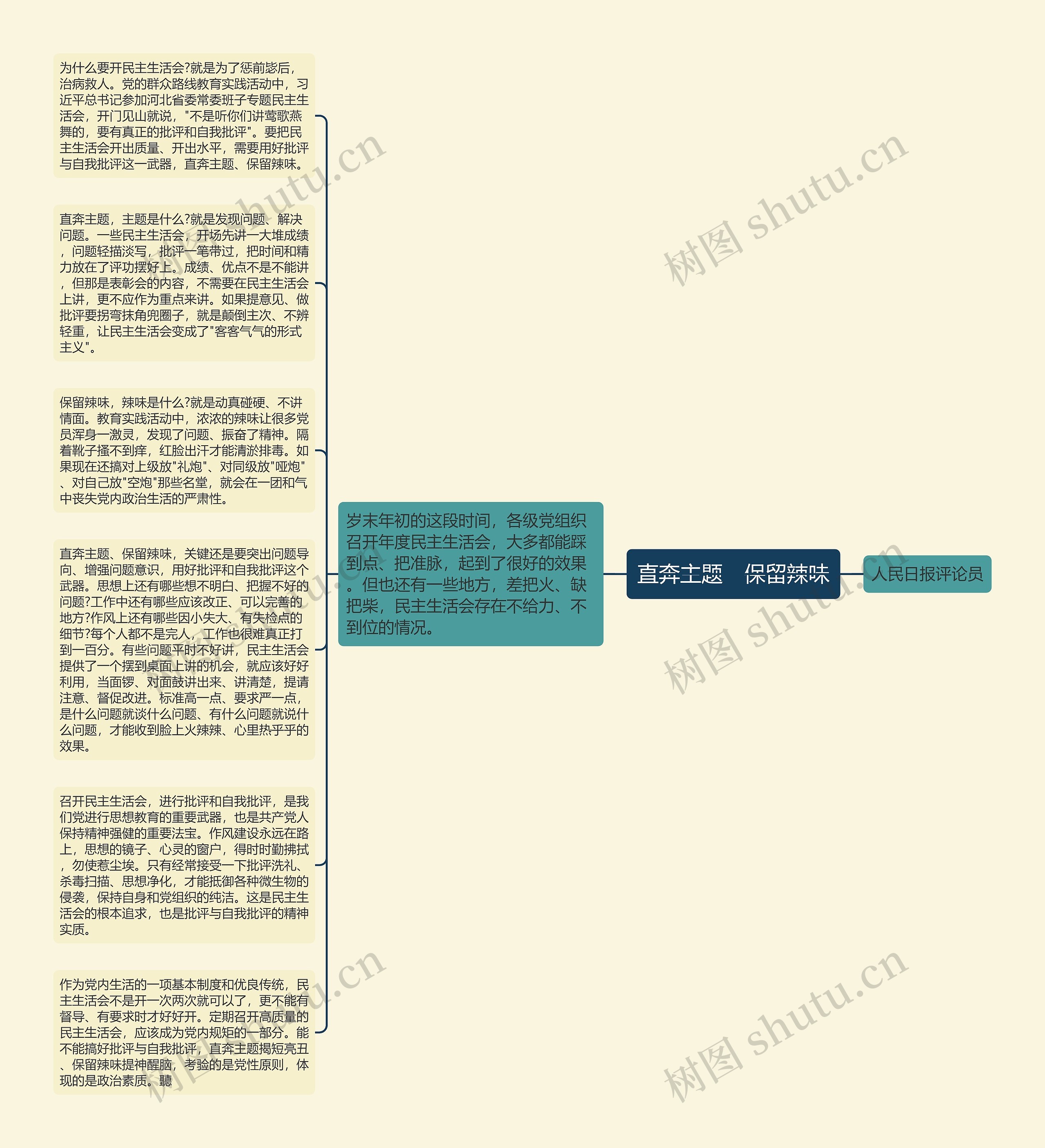 直奔主题,主题是什么?就是发现问题、解决问题。一些民主生活会,开场先讲一大堆成绩,问题轻描淡写,批评一笔带过,把时间和精力放在了评功摆好上。成绩、优点不是不能讲,但那是表彰会的内容,不需要在民主生活会上讲,更不应作为重点来讲。如果提意见、做批评要拐弯抹角兜圈子,就是颠倒主次、不辨轻重,让民主生活会变成了"客客气气的形式主义"。