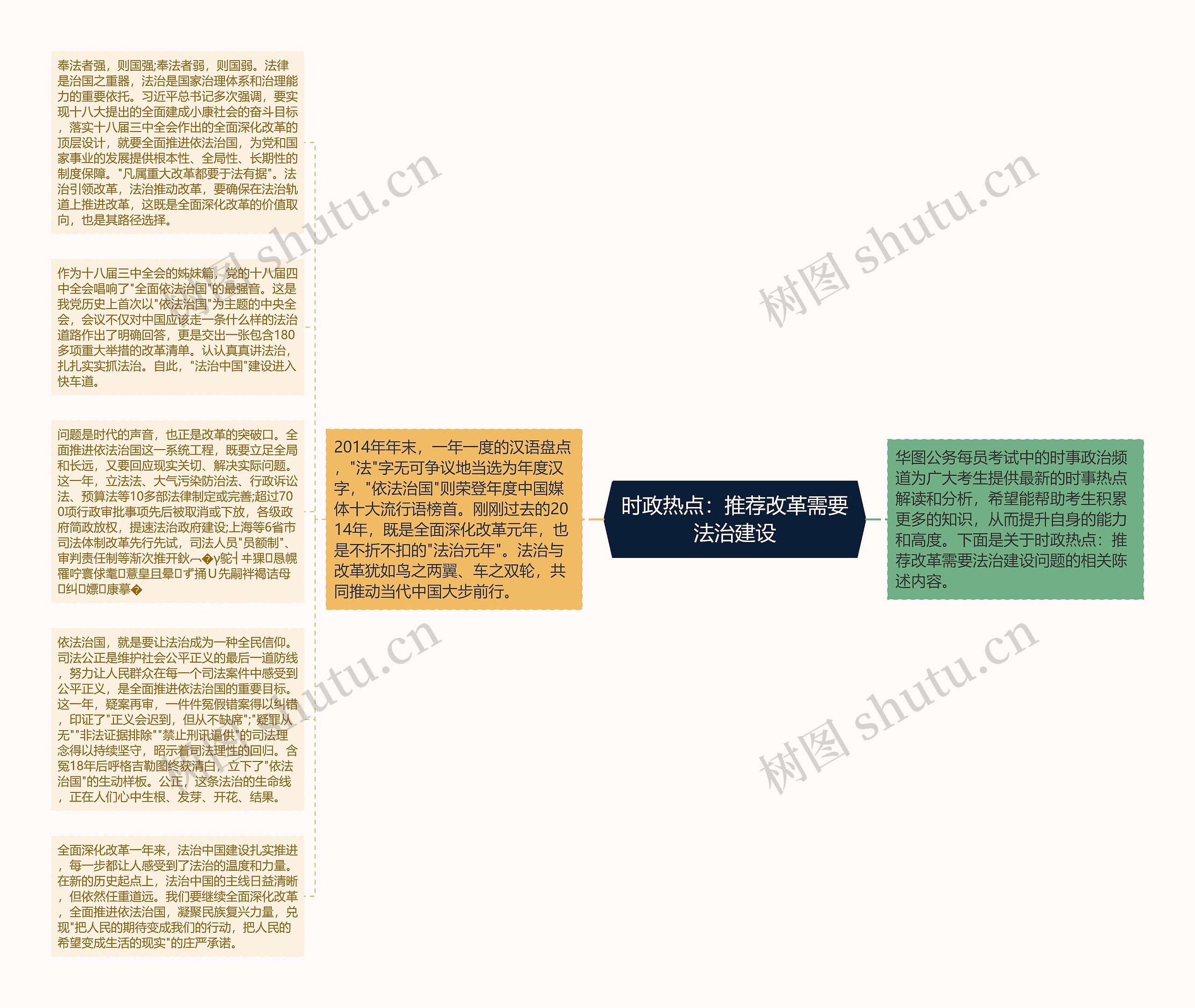 奉法者强,则国强;奉法者弱,则国弱。法律是治国之重器,法治是国家治理体系和治理能力的重要依托。习近平总书记多次强调,要实现十八大提出的全面建成小康社会的奋斗目标,落实十八届三中全会作出的全面深化改革的顶层设计,就要全面推进依法治国,为党和国家事业的发展提供根本性、全局性、长期性的制度保障。"凡属重大改革都要于法有据"。法治引领改革,法治推动改革,要确保在法治轨道上推进改革,这既是全面深化改革的价值取向,也是其路径选择。