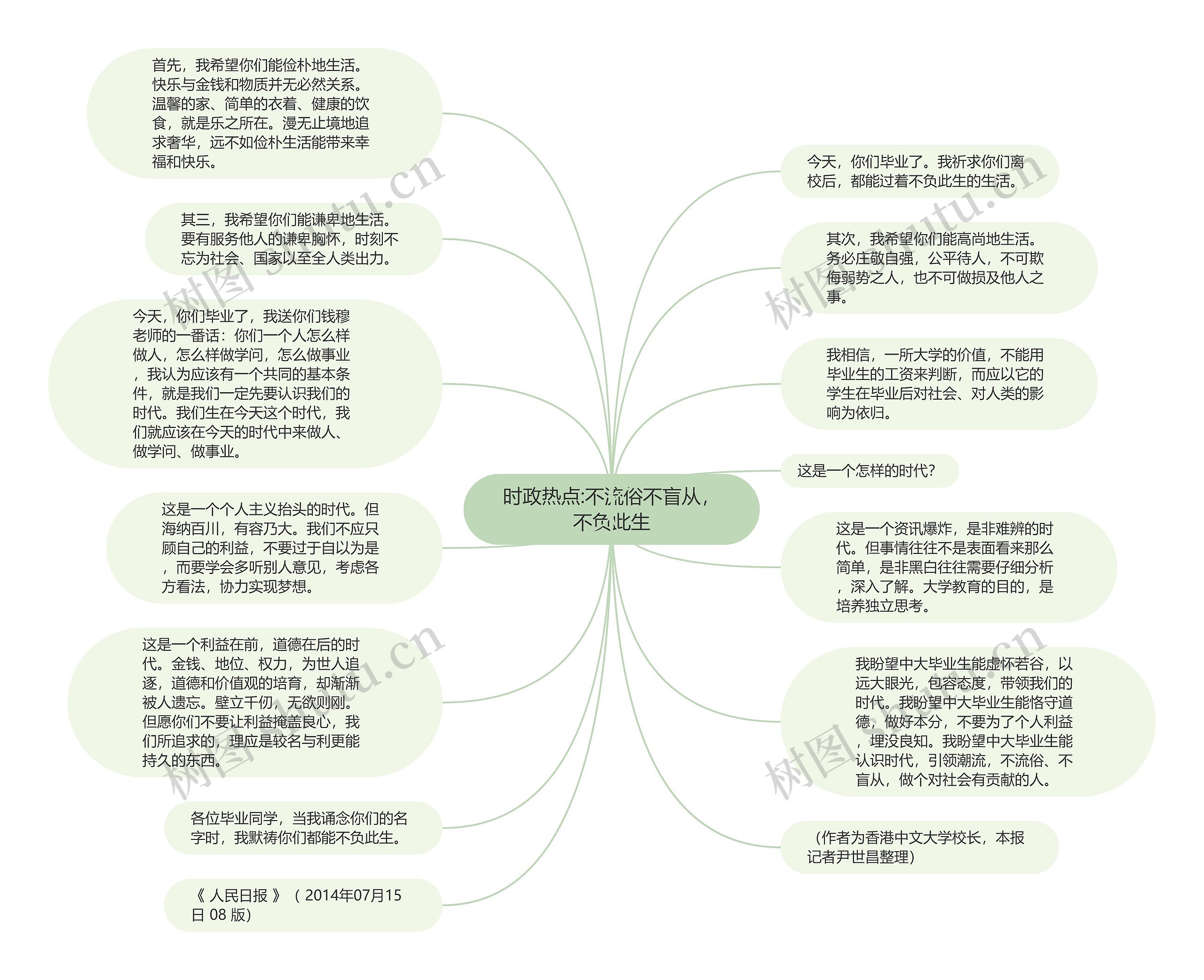 我盼望中大毕业生能虚怀若谷,以远大眼光,包容态度,带领我们的时代。我盼望中大毕业生能恪守道德,做好本分,不要为了个人利益,埋没良知。我盼望中大毕业生能认识时代,引领潮流,不流俗、不盲从,做个对社会有贡献的人。