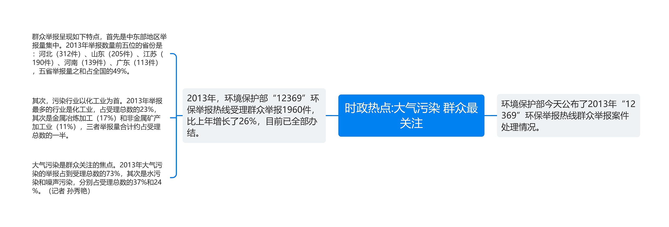 树图思维导图提供《时政热点:大气污染 群众最关注》在线思维导图免费制作,点击“编辑”按钮,可对《时政热点:大气污染 群众最关注》进行在线思维导图编辑,本思维导图属于思维导图模板主题,文件编号是:af338b4cbbe416f583685d74b8b15d5f
