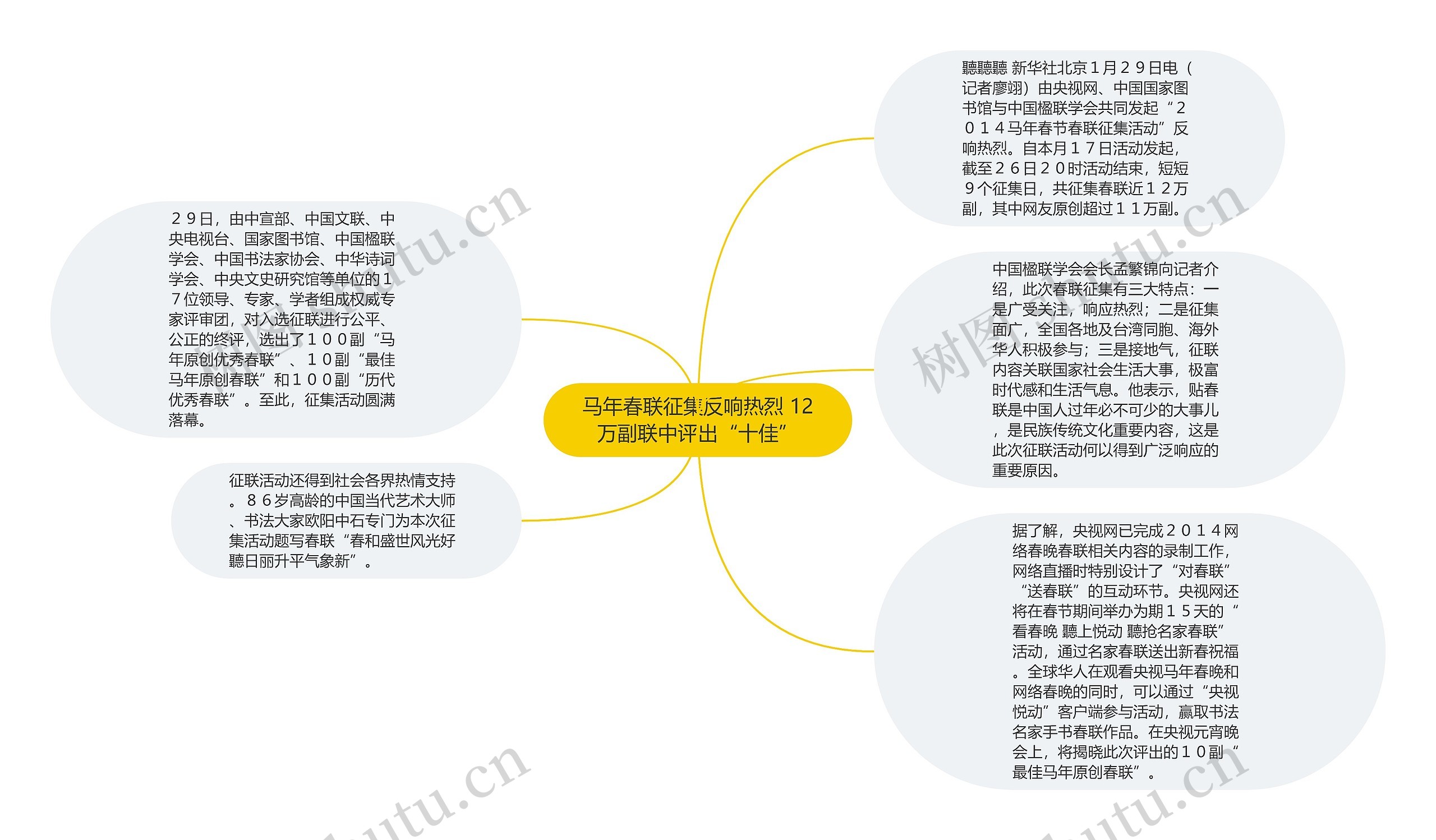 聽聽聽 新华社北京1月29日电(记者廖翊)由央视网、中国国家图书馆与中国楹联学会共同发起“2014马年春节春联征集活动”反响热烈。自本月17日活动发起,截至26日20时活动结束,短短9个征集日,共征集春联近12万副,其中网友原创超过11万副。