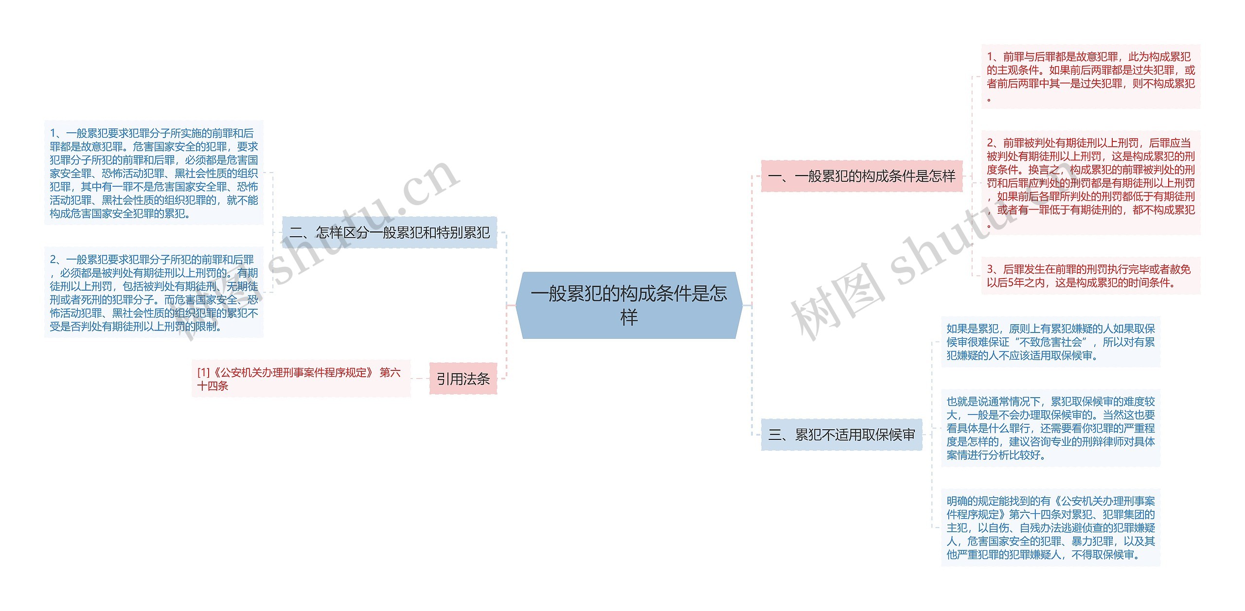 树图思维导图提供《一般累犯的构成条件是怎样》在线思维导图免费制作,点击“编辑”按钮,可对《一般累犯的构成条件是怎样》进行在线思维导图编辑,本思维导图属于思维导图模板主题,文件编号是:295e04ff891e5fba8cb2b7f4a1ef146c