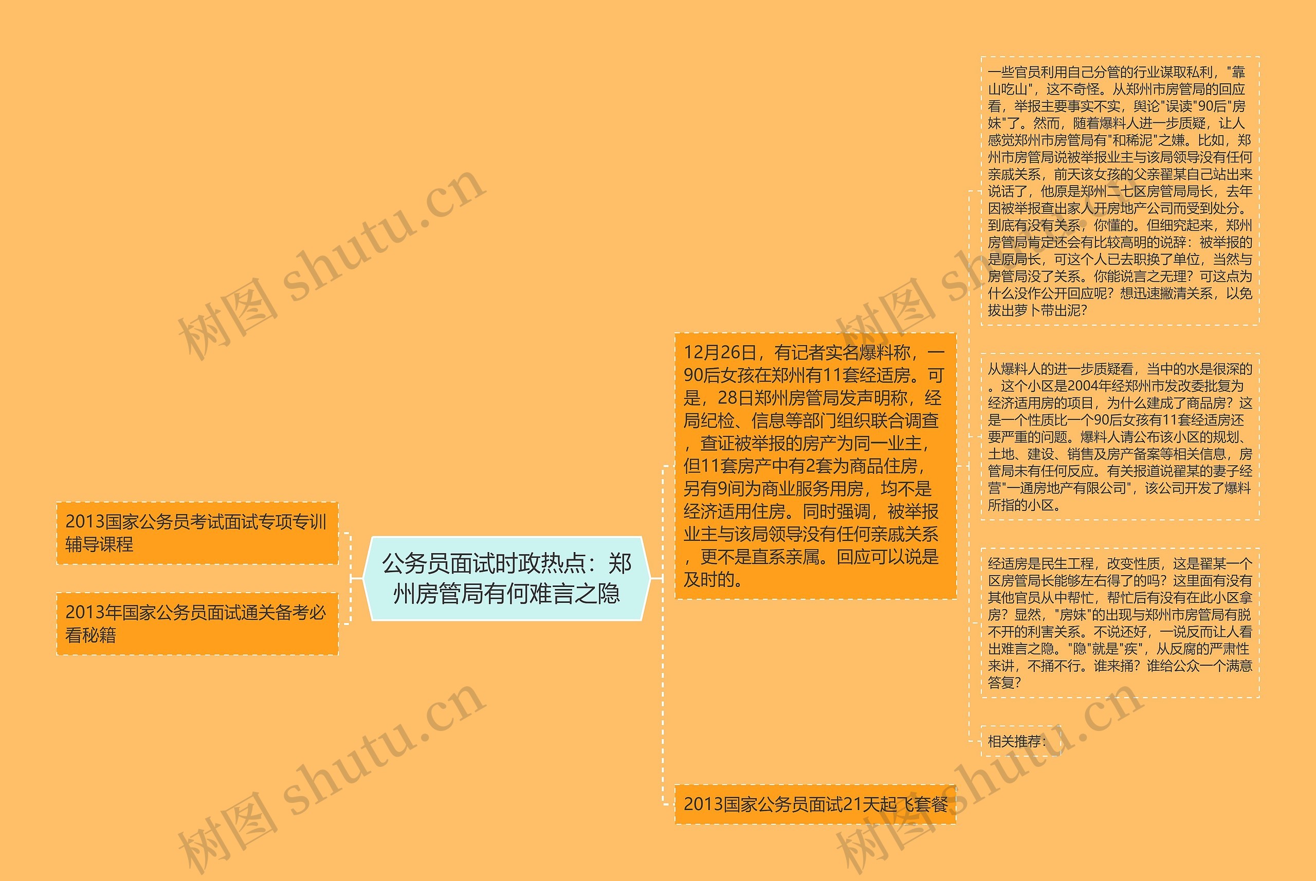 树图思维导图提供《公务员面试时政热点:郑州房管局有何难言之隐》在线思维导图免费制作,点击“编辑”按钮,可对《公务员面试时政热点:郑州房管局有何难言之隐》进行在线思维导图编辑,本思维导图属于思维导图模板主题,文件编号是:ab9c4366e5977a0687e60b71130c5c3d