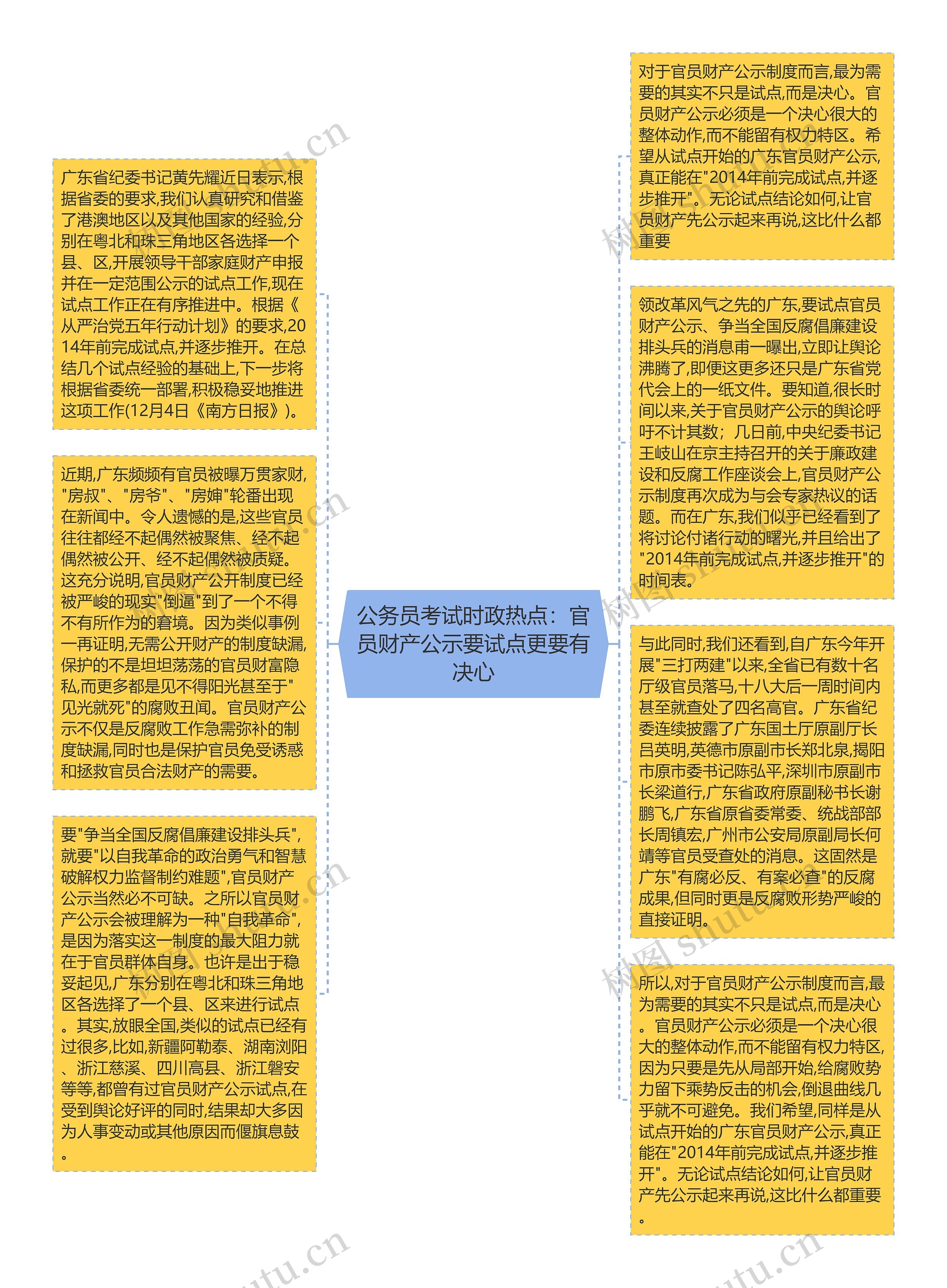 领改革风气之先的广东,要试点官员财产公示、争当全国反腐倡廉建设排头兵的消息甫一曝出,立即让舆论沸腾了,即便这更多还只是广东省党代会上的一纸文件。要知道,很长时间以来,关于官员财产公示的舆论呼吁不计其数;几日前,中央纪委书记王岐山在京主持召开的关于廉政建设和反腐工作座谈会上,官员财产公示制度再次成为与会专家热议的话题。而在广东,我们似乎已经看到了将讨论付诸行动的曙光,并且给出了"2014年前完成试点,并逐步推开"的时间表。