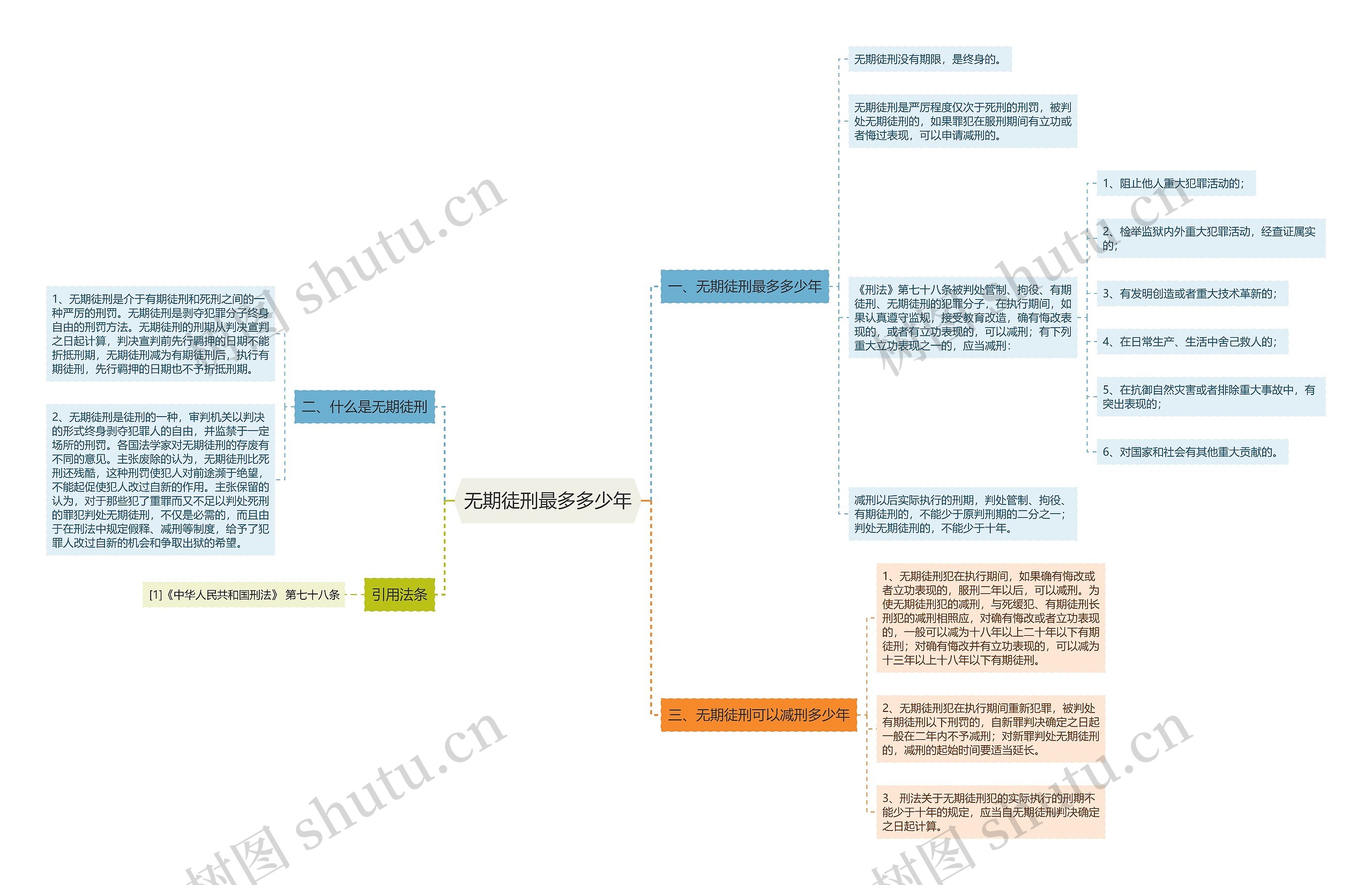 树图思维导图提供《无期徒刑最多多少年》在线思维导图免费制作,点击“编辑”按钮,可对《无期徒刑最多多少年》进行在线思维导图编辑,本思维导图属于思维导图模板主题,文件编号是:e84f99f68201ae5a250438e4945dd9ef