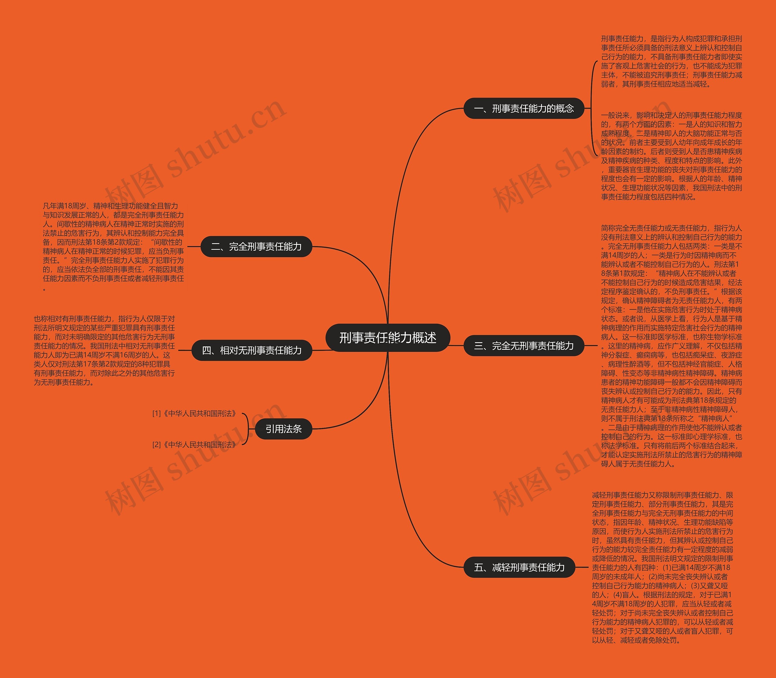 树图思维导图提供《刑事责任能力概述》在线思维导图免费制作,点击“编辑”按钮,可对《刑事责任能力概述》进行在线思维导图编辑,本思维导图属于思维导图模板主题,文件编号是:b0897d046d4ad3d2b4bcf6cd507b1f11