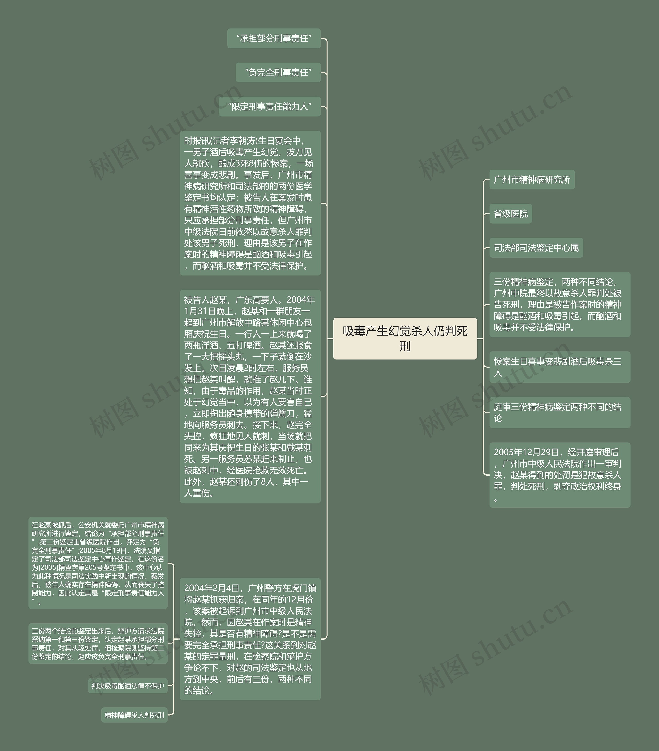 时报讯(记者李朝涛)生日宴会中,一男子酒后吸毒产生幻觉,拔刀见人就砍,酿成3死8伤的惨案,一场喜事变成悲剧。事发后,广州市精神病研究所和司法部的的两份医学鉴定书均认定:被告人在案发时患有精神活性药物所致的精神障碍,只应承担部分刑事责任,但广州市中级法院日前依然以故意杀人罪判处该男子死刑,理由是该男子在作案时的精神障碍是酗酒和吸毒引起,而酗酒和吸毒并不受法律保护。