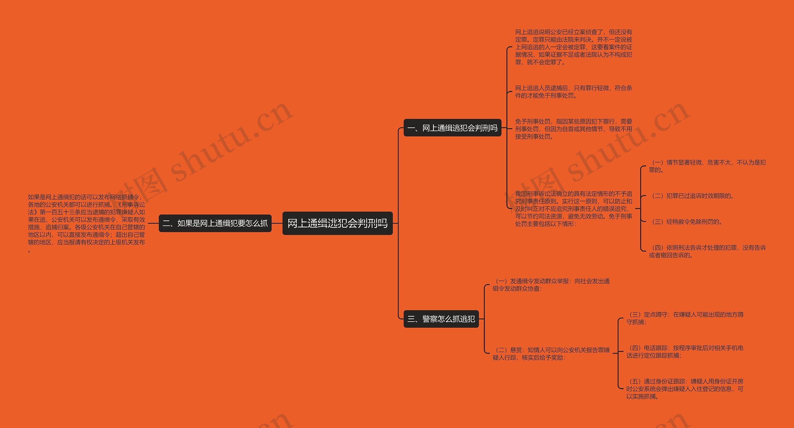 树图思维导图提供《网上通缉逃犯会判刑吗》在线思维导图免费制作,点击“编辑”按钮,可对《网上通缉逃犯会判刑吗》进行在线思维导图编辑,本思维导图属于思维导图模板主题,文件编号是:6ad66fa583e1d3b3ea53dcb3cf896496