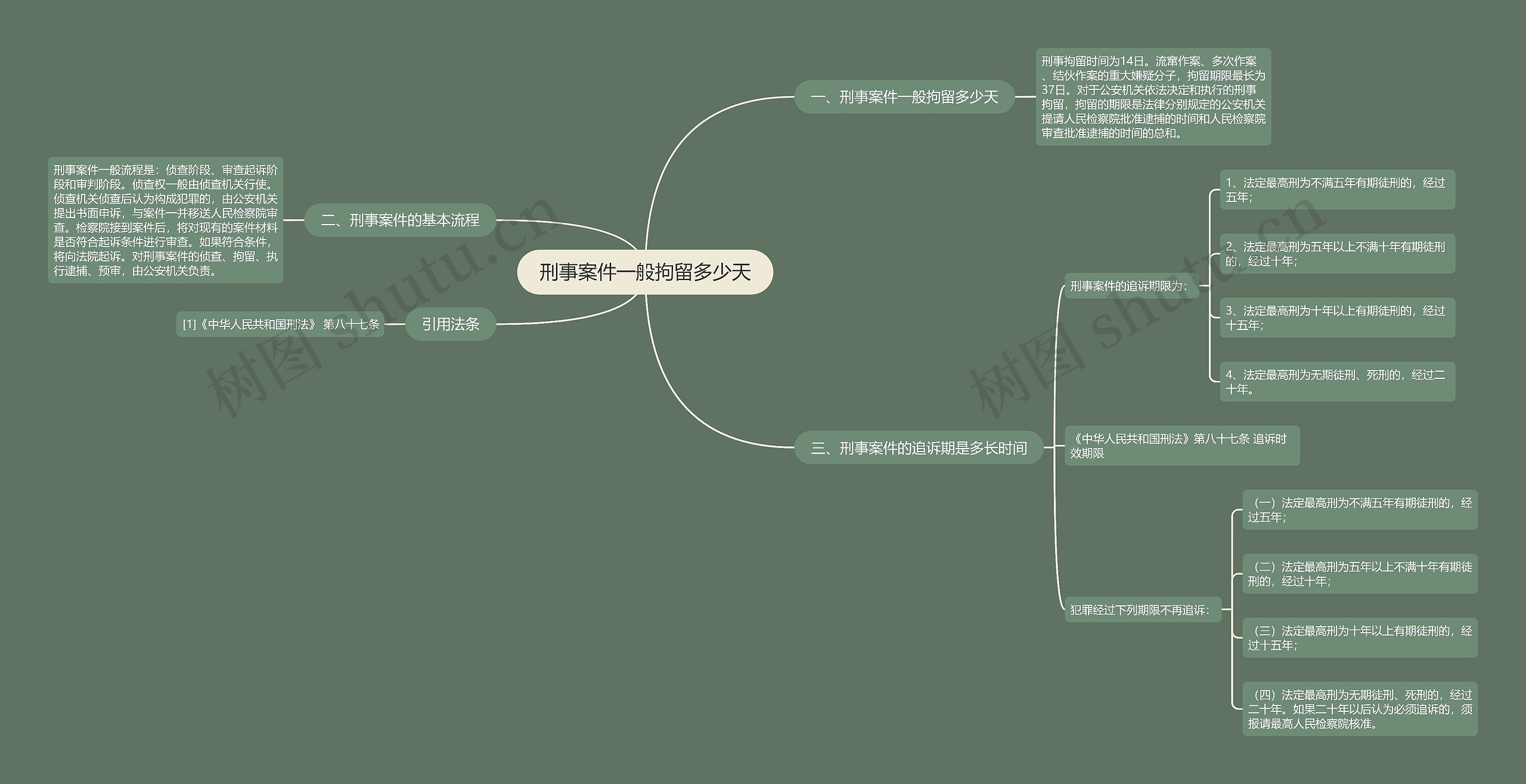 树图思维导图提供《刑事案件一般拘留多少天》在线思维导图免费制作,点击“编辑”按钮,可对《刑事案件一般拘留多少天》进行在线思维导图编辑,本思维导图属于思维导图模板主题,文件编号是:761ae9addb6e9d56ecf28d3b30a2f22b