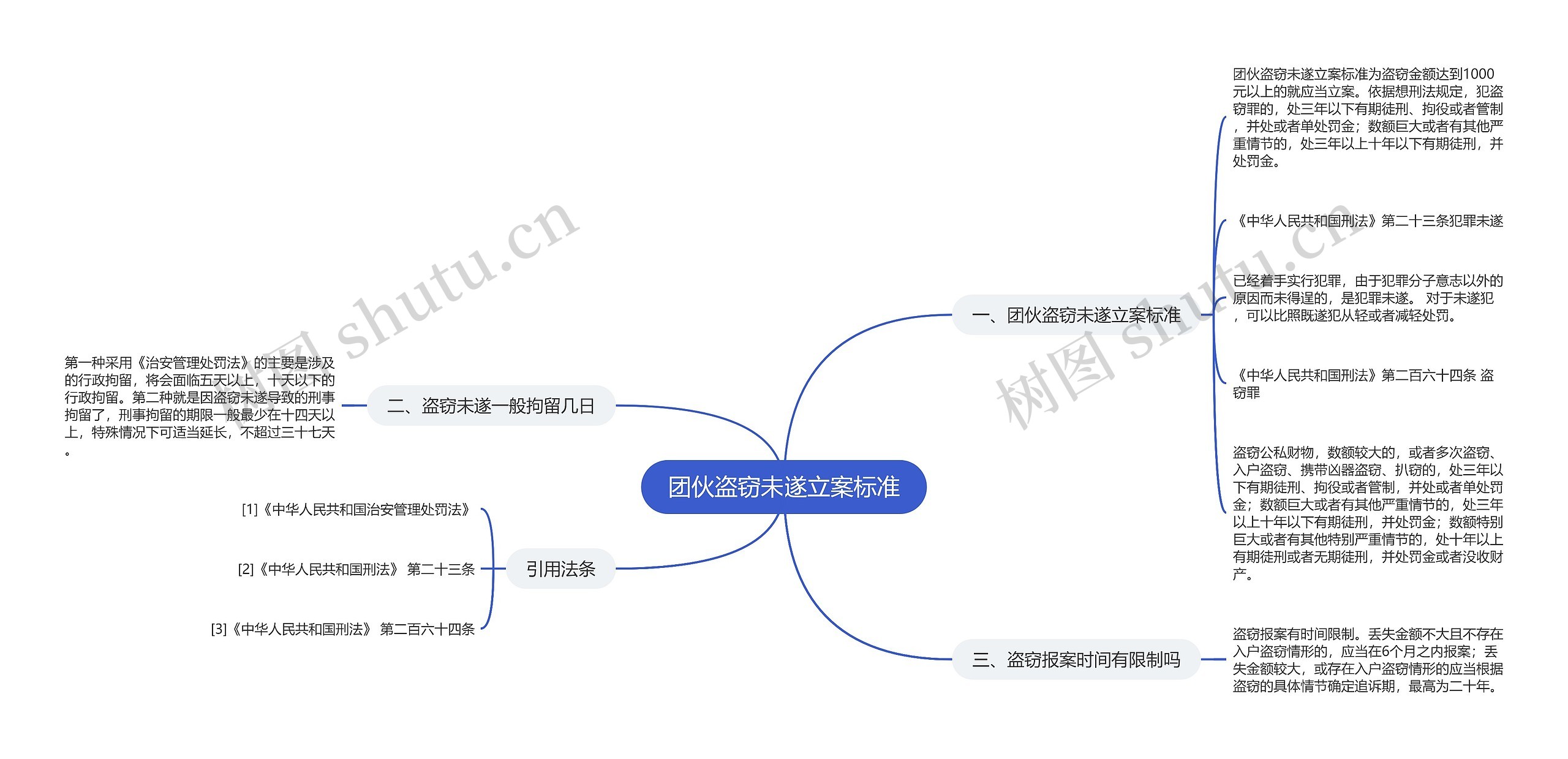 树图思维导图提供《团伙盗窃未遂立案标准》在线思维导图免费制作,点击“编辑”按钮,可对《团伙盗窃未遂立案标准》进行在线思维导图编辑,本思维导图属于思维导图模板主题,文件编号是:b2ff3fa8117e3b60b8807f381ba0e512