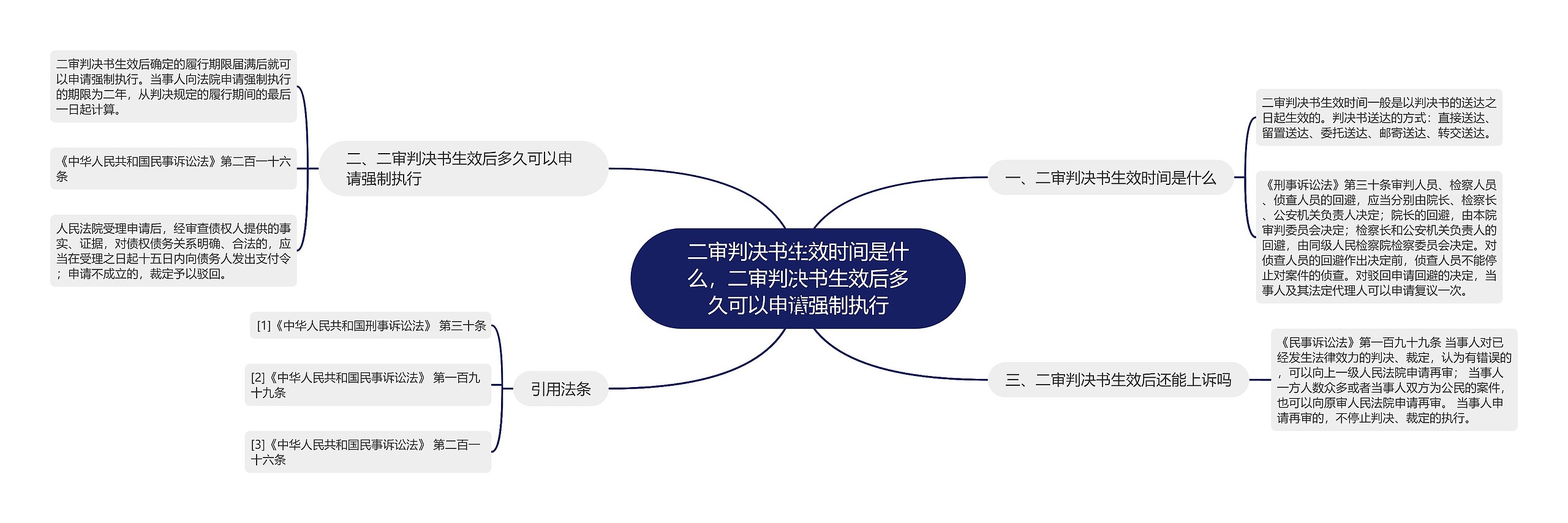 树图思维导图提供《二审判决书生效时间是什么,二审判决书生效后多久可以申请强制执行》在线思维导图免费制作,点击“编辑”按钮,可对《二审判决书生效时间是什么,二审判决书生效后多久可以申请强制执行》进行在线思维导图编辑,本思维导图属于思维导图模板主题,文件编号是:bcbfed1c170f1151543773ce01ae16ef