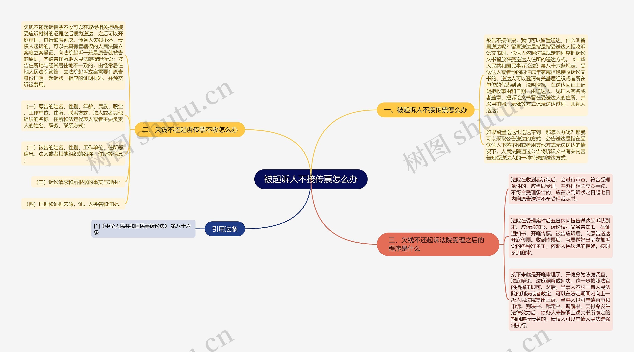 树图思维导图提供《被起诉人不接传票怎么办》在线思维导图免费制作,点击“编辑”按钮,可对《被起诉人不接传票怎么办》进行在线思维导图编辑,本思维导图属于思维导图模板主题,文件编号是:2258c46726c5c70aad921a1f00b84ae4