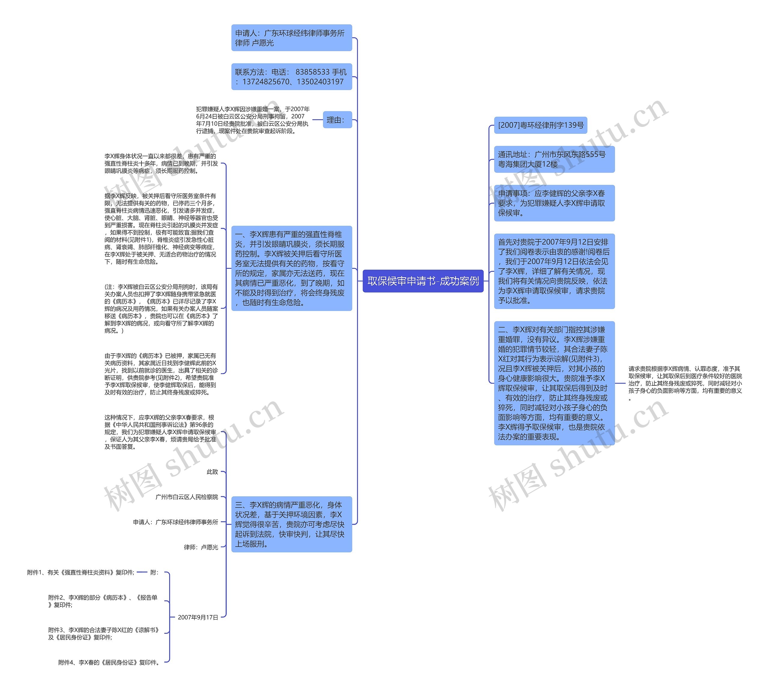 请求贵院根据李X辉病情、认罪态度,准予其取保候审,让其取保后到医疗条件较好的医院治疗,防止其终身残废或猝死,同时减轻对小孩子身心的负面影响等方面,均有重要的意义。