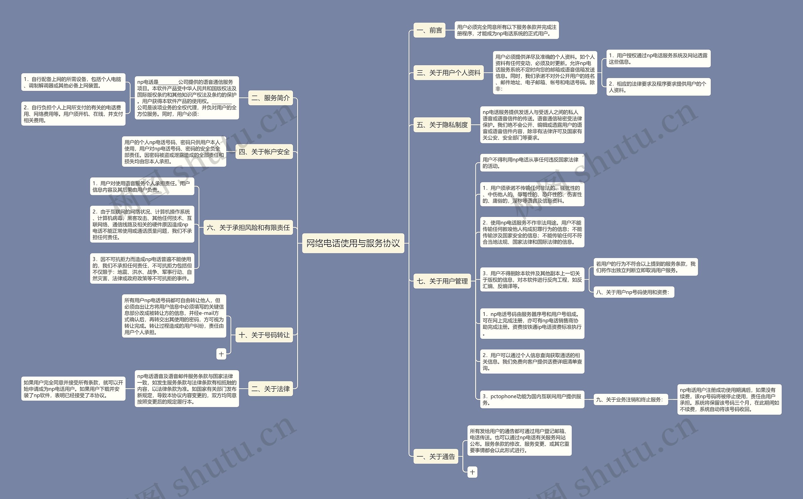 树图思维导图提供《网络电话使用与服务协议》在线思维导图免费制作,点击“编辑”按钮,可对《网络电话使用与服务协议》进行在线思维导图编辑,本思维导图属于思维导图模板主题,文件编号是:66c05a02730d9d855de24f5568a7f7a4