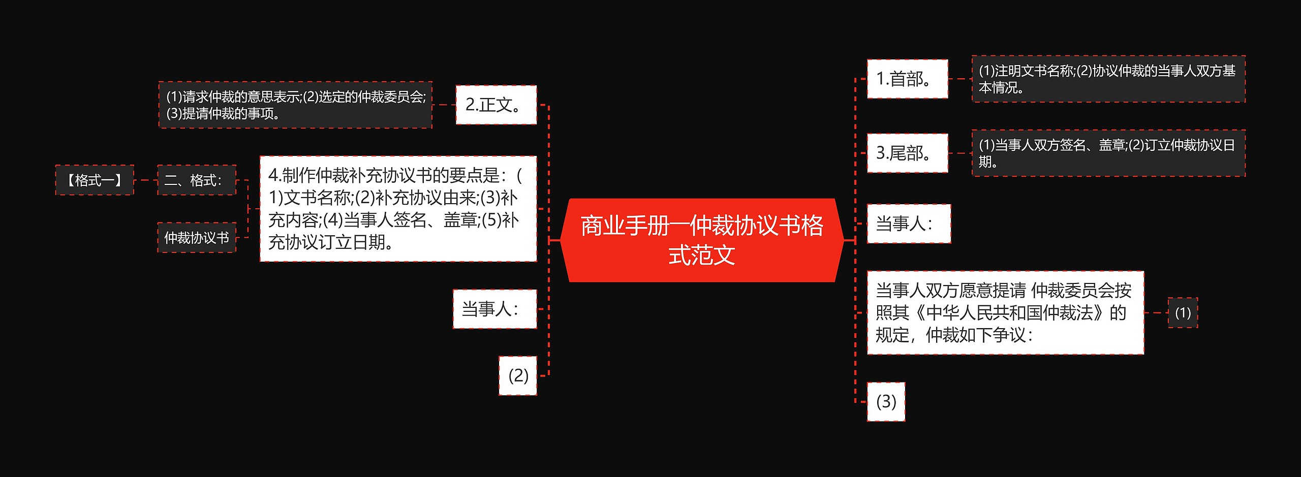 树图思维导图提供《商业手册――仲裁协议书格式范文》在线思维导图免费制作,点击“编辑”按钮,可对《商业手册――仲裁协议书格式范文》进行在线思维导图编辑,本思维导图属于思维导图模板主题,文件编号是:52cfd1d0189dbfceb6e07b308f8a5a36