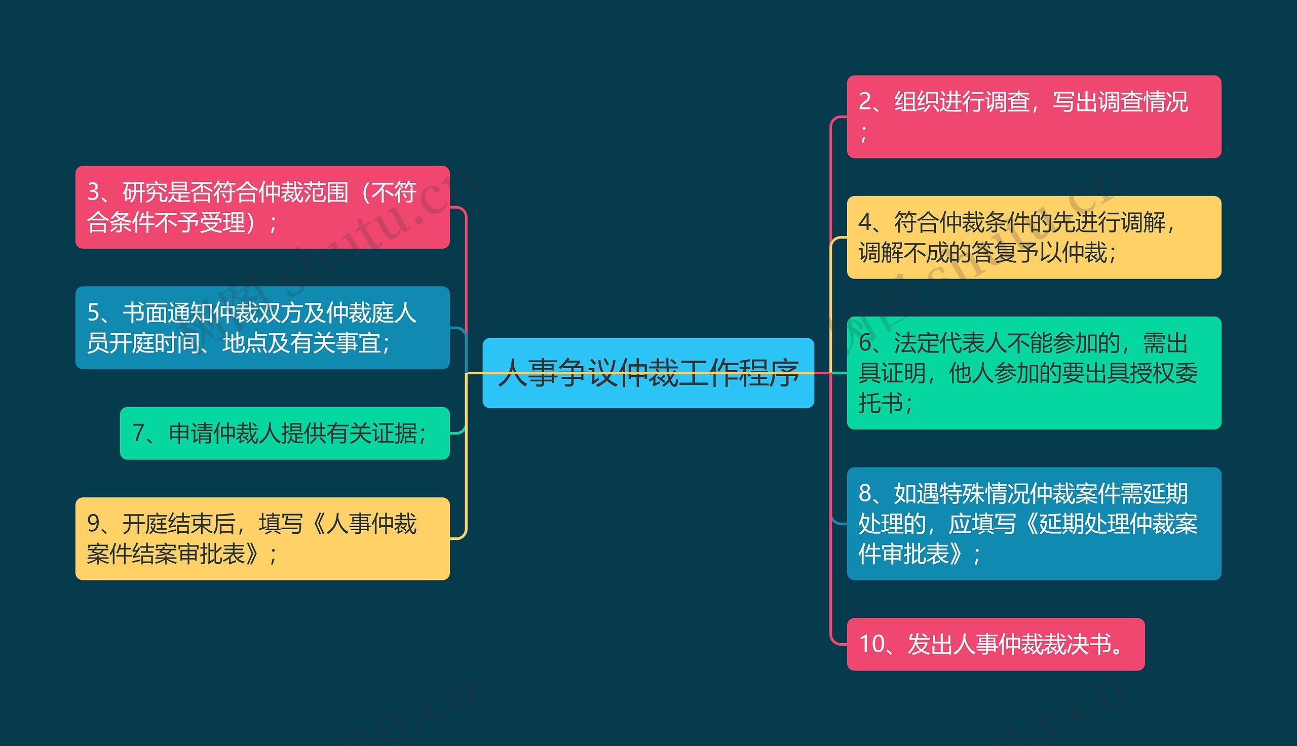 树图思维导图提供《人事争议仲裁工作程序》在线思维导图免费制作,点击“编辑”按钮,可对《人事争议仲裁工作程序》进行在线思维导图编辑,本思维导图属于思维导图模板主题,文件编号是:024189b53d82dc3708c3354b02f5ab94