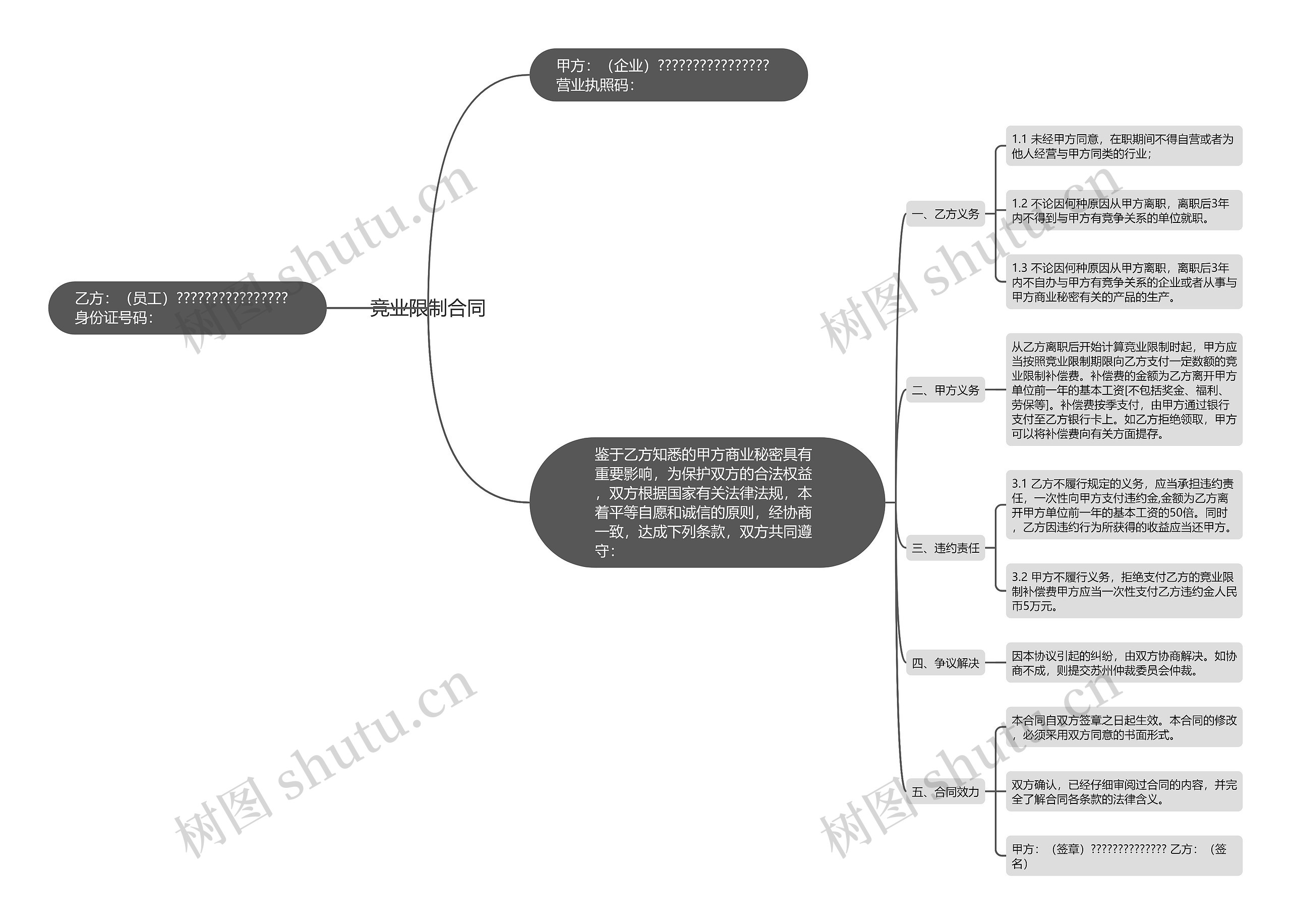 树图思维导图提供《竞业限制合同》在线思维导图免费制作,点击“编辑”按钮,可对《竞业限制合同》进行在线思维导图编辑,本思维导图属于思维导图模板主题,文件编号是:79c8ee4ca4e427e2dc103ecd21362f5d