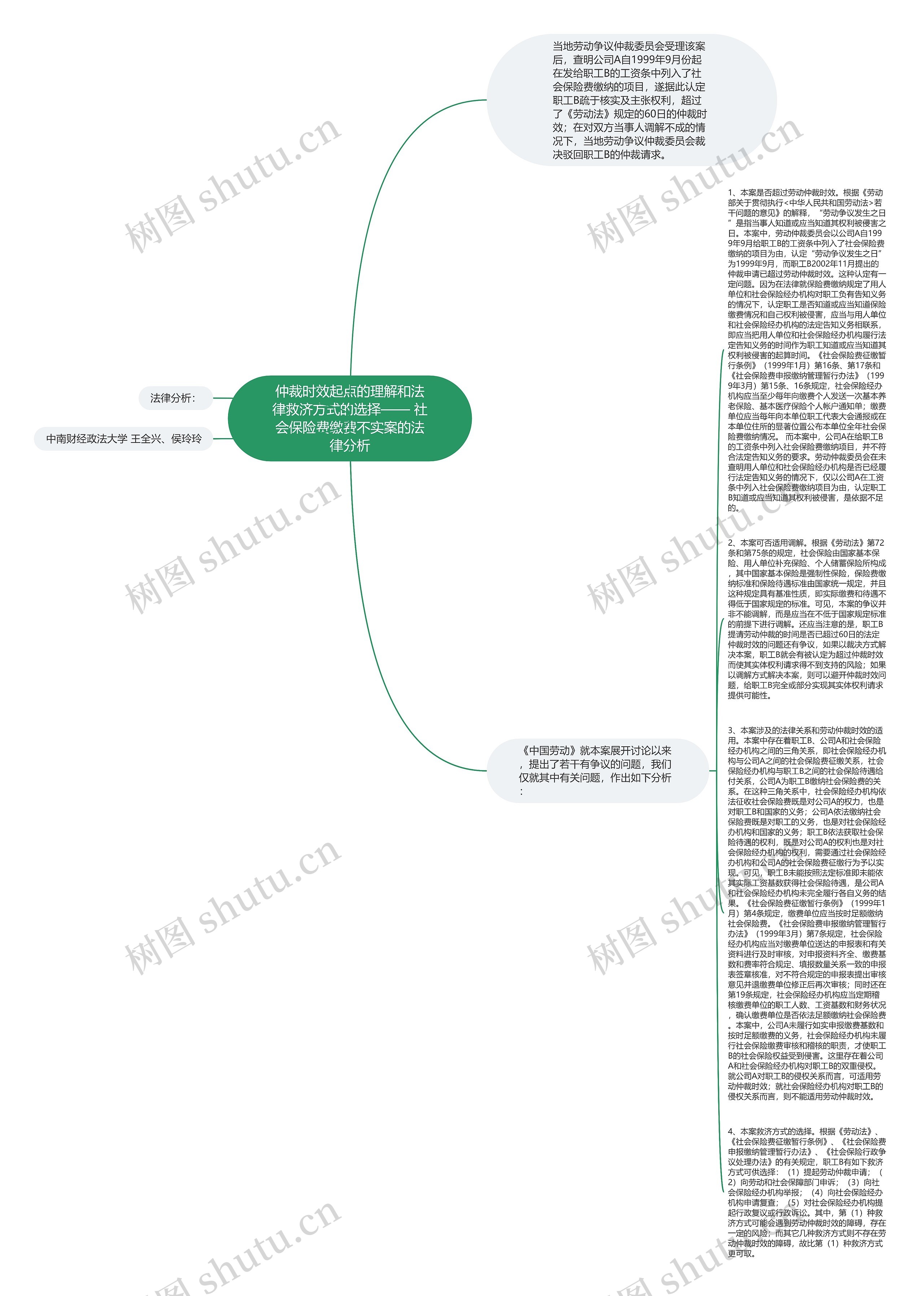 3、本案涉及的法律关系和劳动仲裁时效的适用。本案中存在着职工B、公司A和社会保险经办机构之间的三角关系,即社会保险经办机构与公司A之间的社会保险费征缴关系,社会保险经办机构与职工B之间的社会保险待遇给付关系,公司A为职工B缴纳社会保险费的关系。在这种三角关系中,社会保险经办机构依法征收社会保险费既是对公司A的权力,也是对职工B和国家的义务;公司A依法缴纳社会保险费既是对职工的义务,也是对社会保险经办机构和国家的义务;职工B依法获取社会保险待遇的权利,既是对公司A的权利也是对社会保险经办机构的权利,需要通过社会保险经办机构和公司A的社会保险费征缴行为予以实现。可见,职工B未能按照法定标准即未能依其实际工资基数获得社会保险待遇,是公司A和社会保险经办机构未完全履行各自义务的结果。《社会保险费征缴暂行条例》(1999年1月)第4条规定,缴费单位应当按时足额缴纳社会保险费。《社会保险费申报缴纳管理暂行办法》(1999年3月)第7条规定,社会保险经办机构应当对缴费单位送达的申报表和有关资料进行及时审核,对申报资料齐全、缴费基数和费率符合规定、填报数量关系一致的申报表签章核准,对不符合规定的申报表提出审核意见并退缴费单位修正后再次审核;同时还在第19条规定,社会保险经办机构应当定期稽核缴费单位的职工人数、工资基数和财务状况,确认缴费单位是否依法足额缴纳社会保险费。本案中,公司A未履行如实申报缴费基数和按时足额缴费的义务,社会保险经办机构未履行社会保险缴费审核和稽核的职责,才使职工B的社会保险权益受到侵害。这里存在着公司A和社会保险经办机构对职工B的双重侵权。就公司A对职工B的侵权关系而言,可适用劳动仲裁时效;就社会保险经办机构对职工B的侵权关系而言,则不能适用劳动仲裁时效。