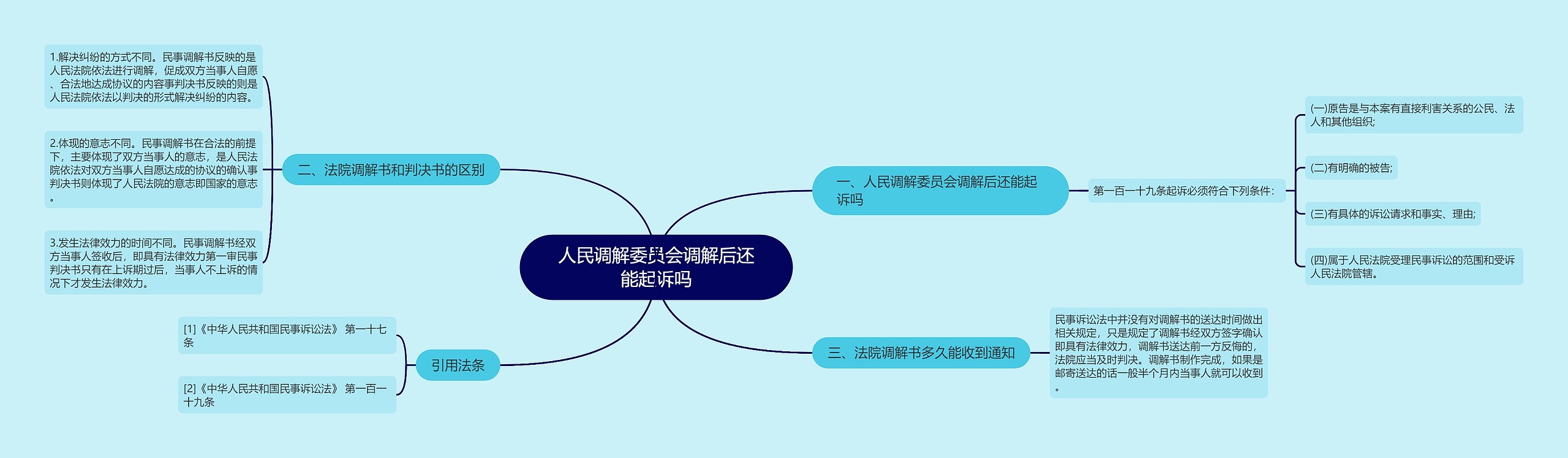 树图思维导图提供《人民调解委员会调解后还能起诉吗》在线思维导图免费制作,点击“编辑”按钮,可对《人民调解委员会调解后还能起诉吗》进行在线思维导图编辑,本思维导图属于思维导图模板主题,文件编号是:eae2bac3e034a4e270e94e63662f0676
